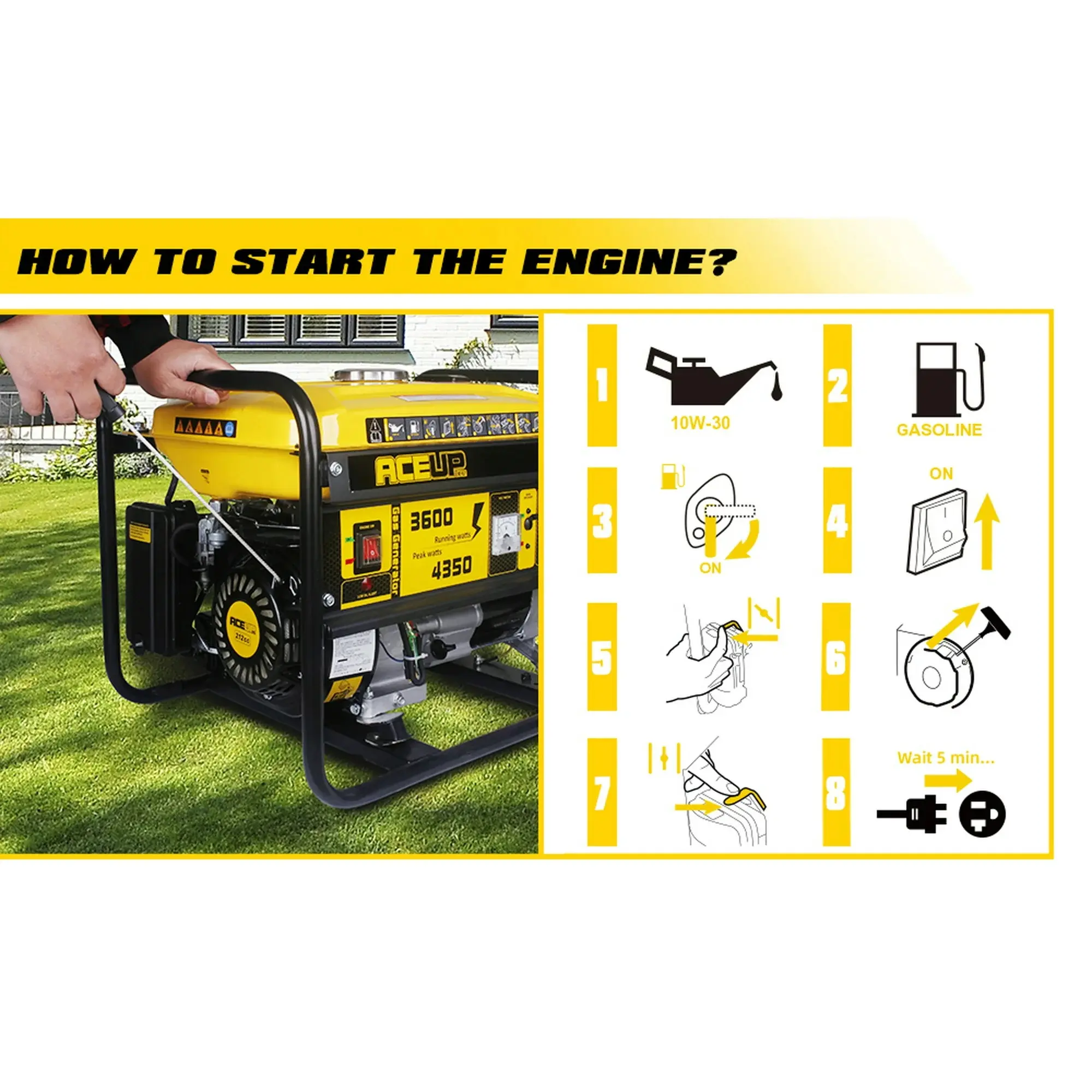 ·Model: ACEUP ENERGY AG4350. Power type: Gas-powered.