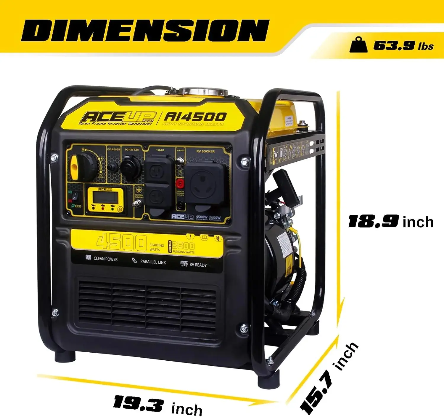 Aceup Energy AI4500 4500 Watt Open Frame Inverter Generator Gas Powered 223CC RV Ready EPA Compliant Clean Power Parallel Link