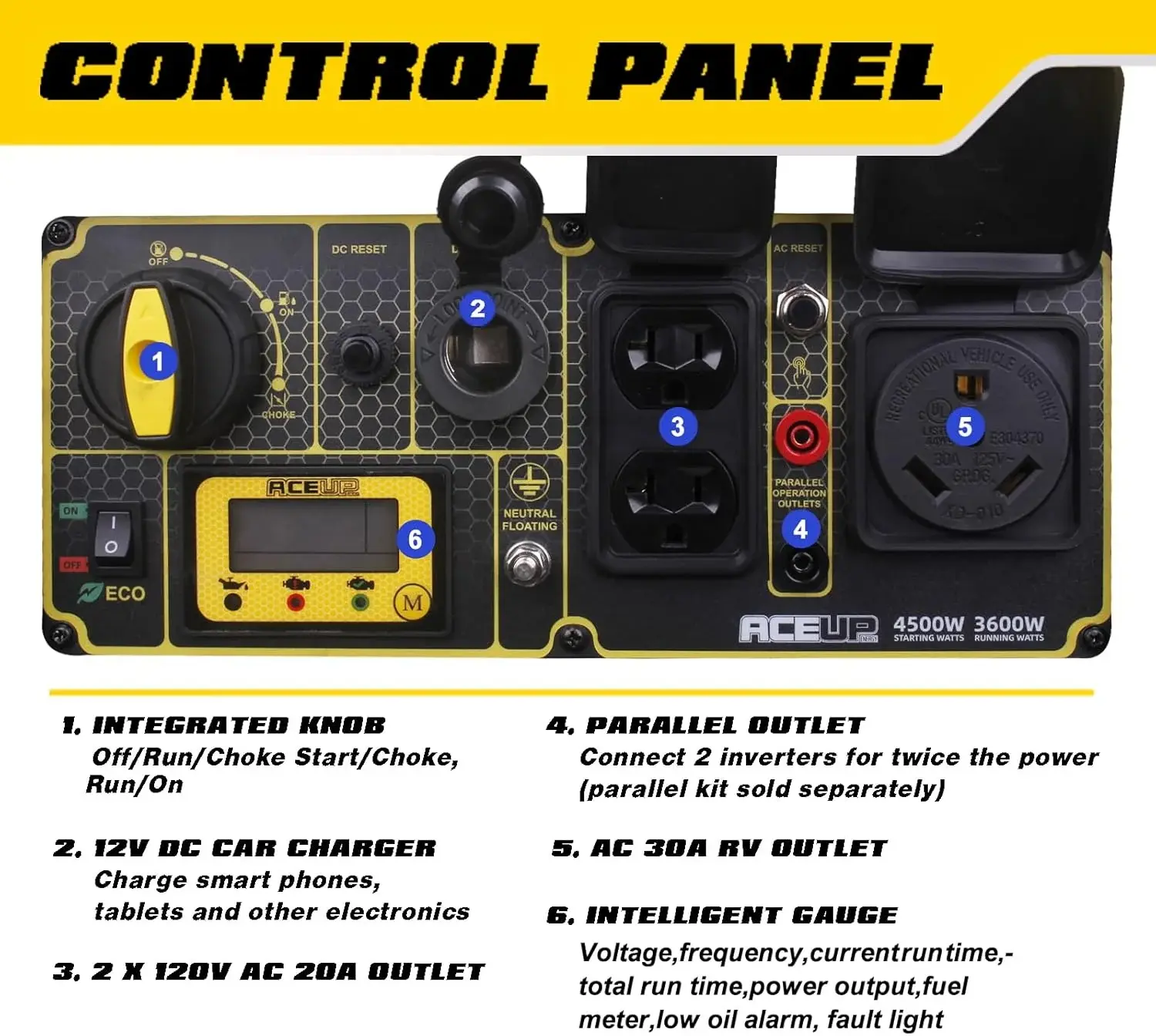 5. Aceup Energy AI4500 4500 Watt Open Frame Inverter Generator Gas Powered 223CC RV Ready EPA Compliant Clean Power Parallel Link