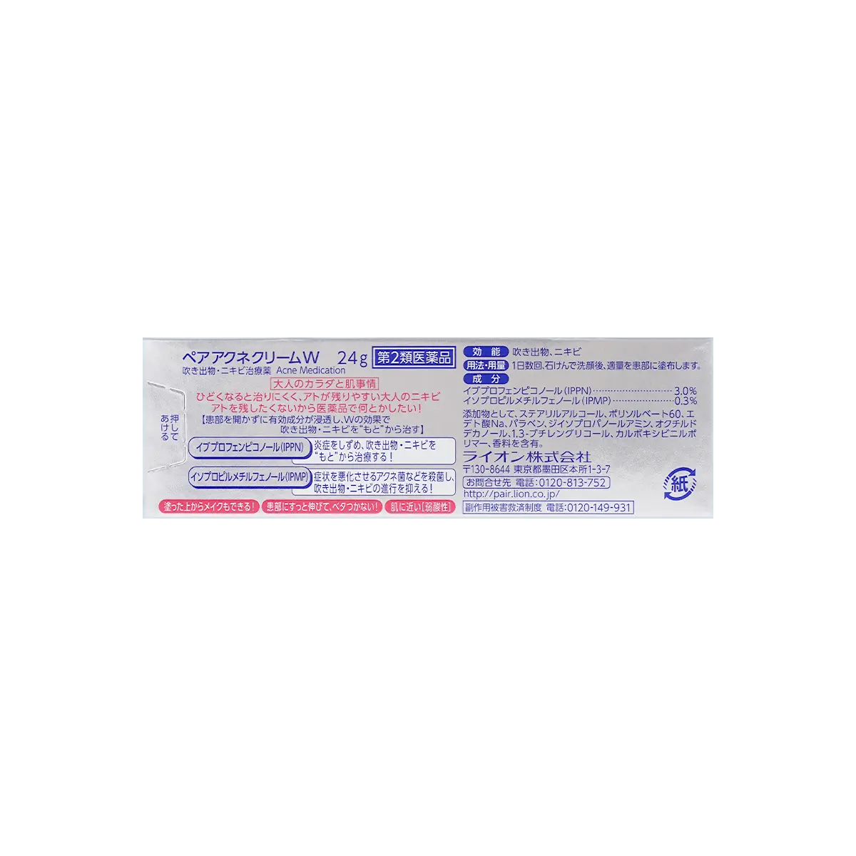 Clear acne fast and effectively! LION Japan's PAIR Acne Treatment Cream targets pimples and acne, reducing redness and swelling quickly. Top-selling in Japan for acne-prone skin, continued use delivers better results. Ibuprofen and Piconol (3%) are key ingredients for fast relief.