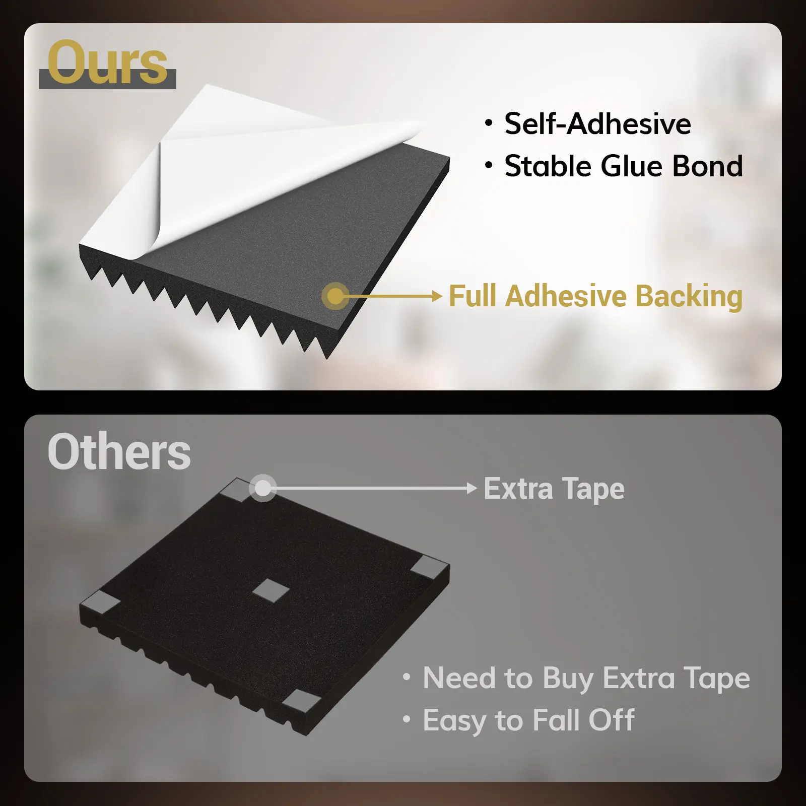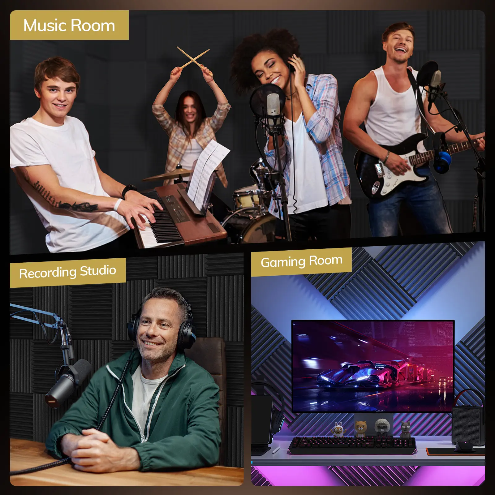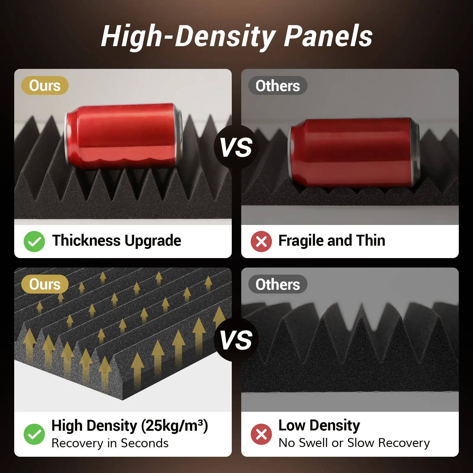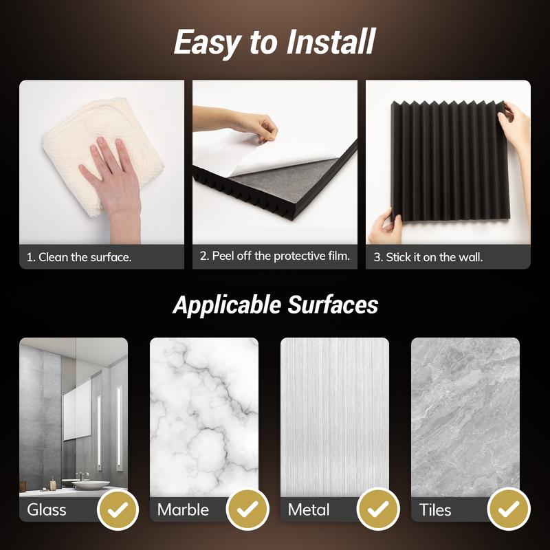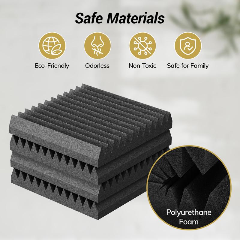 Ever struggled with echo or poor sound quality in your recording or gaming space? TONOR Acoustic Foam Panels are here to save your ears! These 2" thick wedges are designed with a unique 3D pyramid shape to absorb flutter echoes, reverberation, and standing waves, making your room sound crisp and clear. Made from high-density (25kg/m³) polyurethane foam, they deliver professional-grade sound absorption with an NRC rating up to 0.92. Installation is a breeze thanks to the self-adhesive backing—just peel and stick wherever you need better acoustics, no extra glue or tape required. Each pack comes vacuum-sealed, so after unpacking, give them about 24 hours to fully expand to their wedge shape. Plus, they're odorless and non-toxic, so you can enjoy improved sound without any worries. Whether you're recording podcasts, streaming games, or holding meetings, these panels help create the perfect acoustic environment. Grab your set today and hear the difference in your space!
