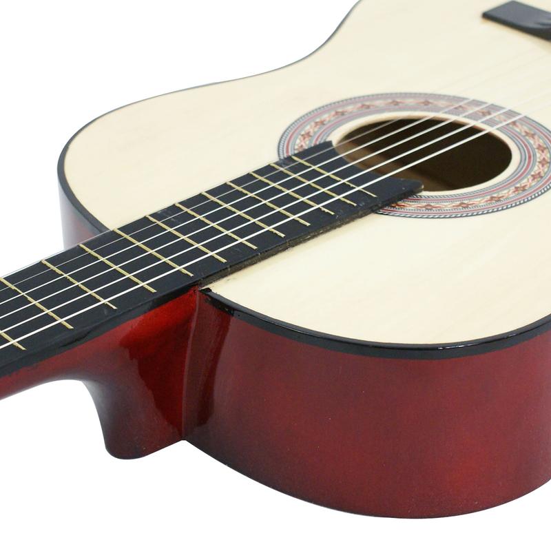 Comfortable and Ergonomic Design: The guitar features a comfortable body shape that is easy to hold and control, whether you're practicing while seated or performing standing up with the included shoulder strap.