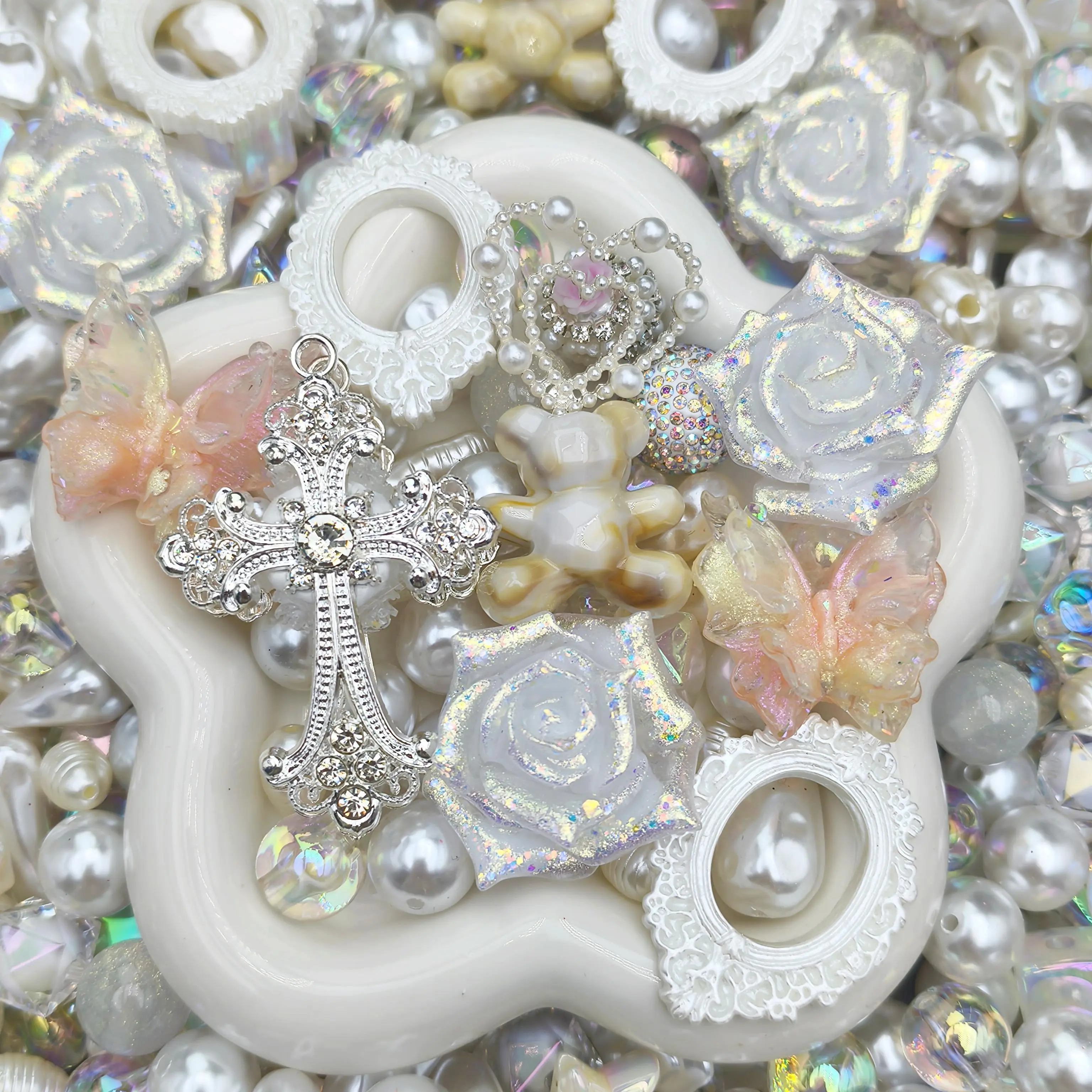 items received different from live. They didn’t send any characters to make diy holes too big or too small or flat character or only 1 rhinestone bead.