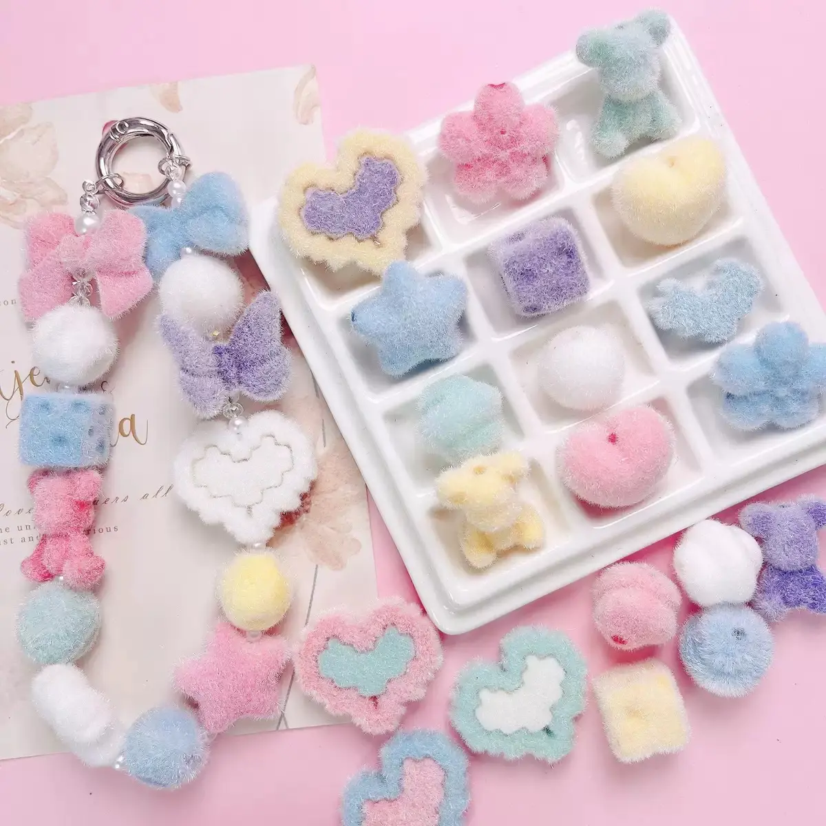 ✨. This set includes playful shapes like flowers, stars, hearts, bunnies, bears, pearls, butterflies, and candies. Perfect for adding a cute touch to your DIY projects.