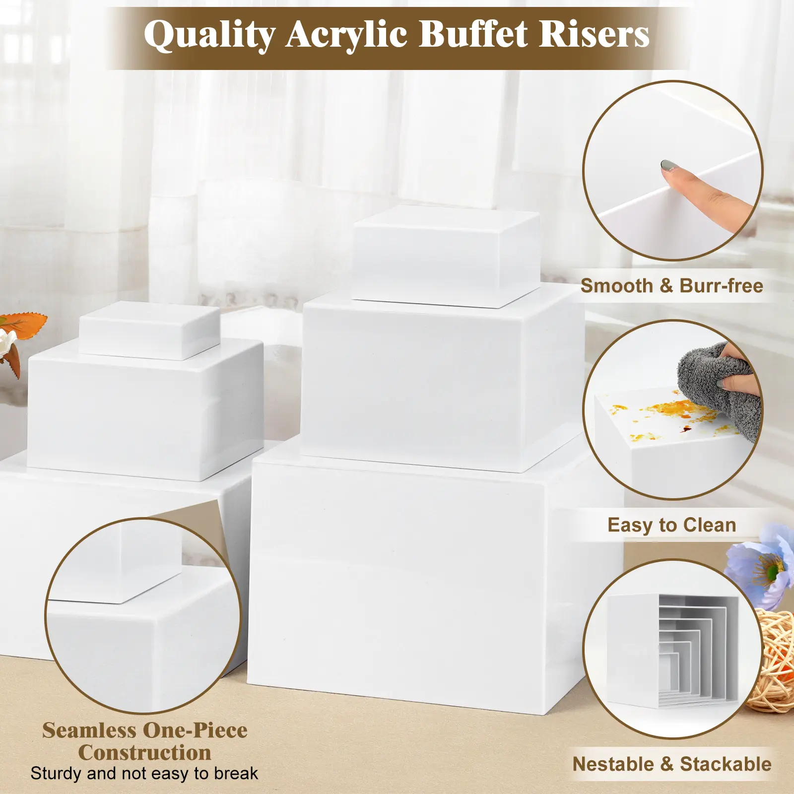 ·Elevate Every Display with Sleek, See-Through Style! These 6-piece acrylic buffet risers feature a minimalist transparent design and six graduated heights to create eye-catching, professional-tiered arrangements—perfect for cakes, desserts, charcuterie, or party spreads.