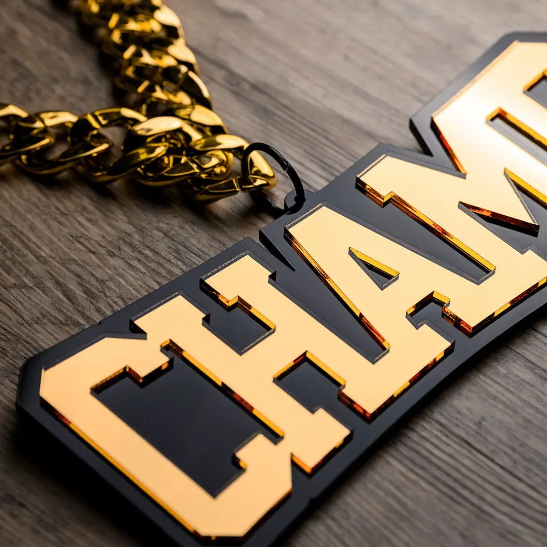 Own your win with the Champ Acrylic Chain from TrophySmack! This striking chain is more than a trophy—it's a statement of your extraordinary achievement. Made from sleek, high-quality acrylic, it’s designed to stand out and celebrate your champion status in style. Whether you’ve excelled in a fantasy league, triumphed in a sports event, or conquered any challenge, this chain makes sure your success is front and center.