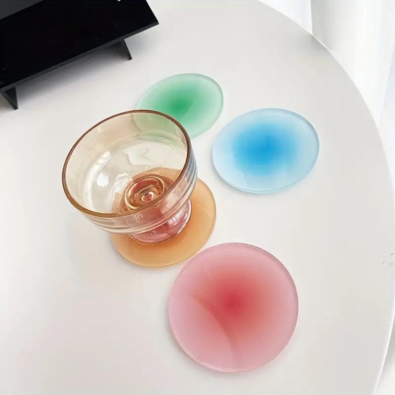 Colorful Gradient Acrylic Coaster, 4 Counts/set Round Heat Resistant Non-slip Coaster, Decorative Coaster for Home Kitchen Dining Room