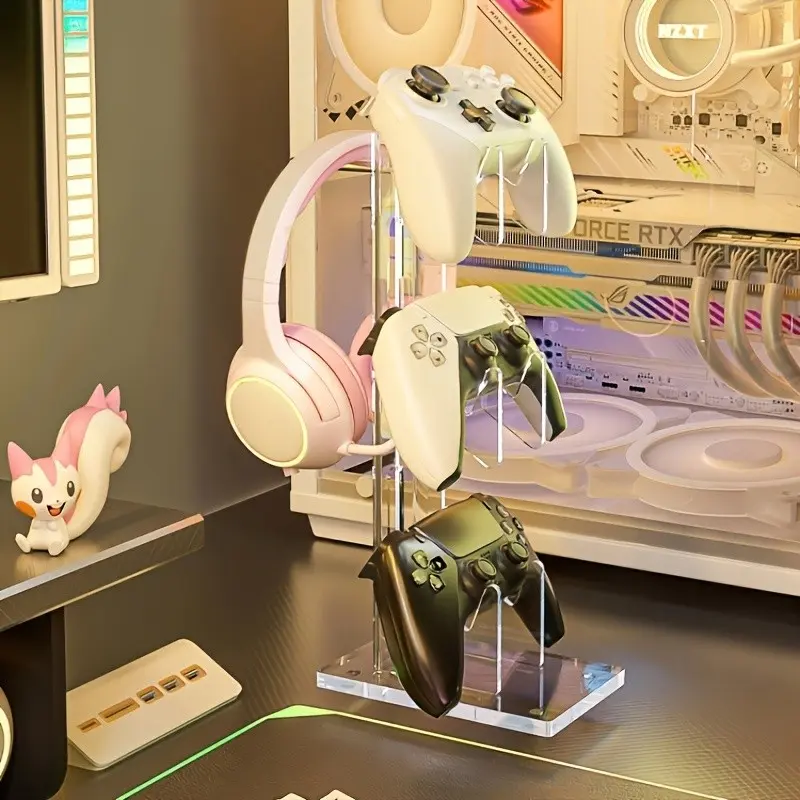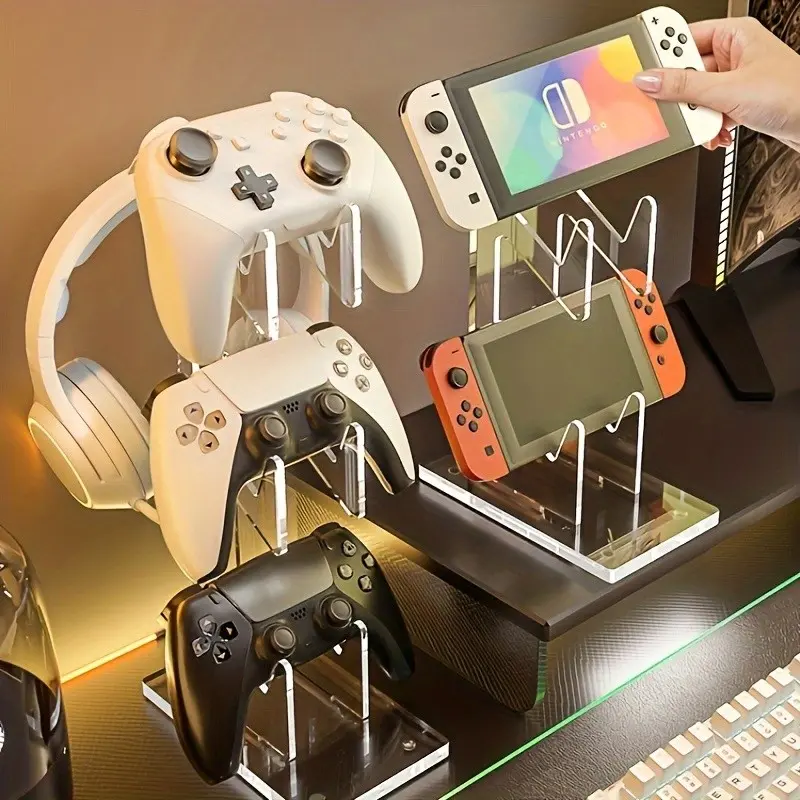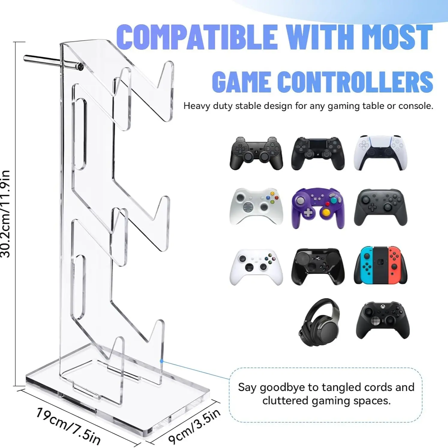 ·Multifunctional 3 - Tier Design for Gamers:This acrylic controller stand features a three - tier structure, serving as a universal equipment stand. It's perfectly compatible with Xbox, PS5, PS4, and Nintendo Switch controllers, offering abundant storage space. Additionally, it functions as a headphone stand, helping you keep your desktop tidy. Ideal for gamers with multiple consoles.