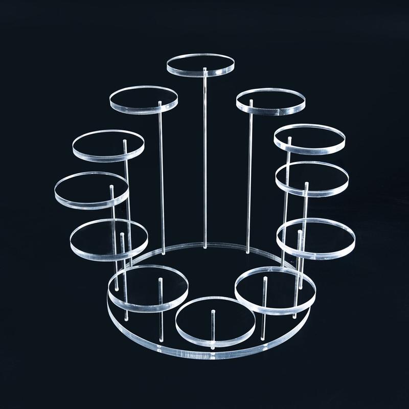 Modern decor: Clear acrylic construction and simple circular design complement contemporary home and retail decors.