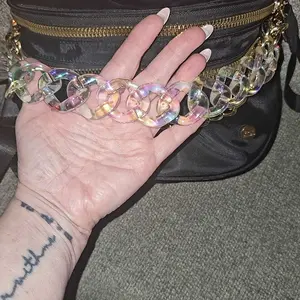 I just received this Gold Blush Bag Chain, so haven't used it yet. I love the smokey marble color!!