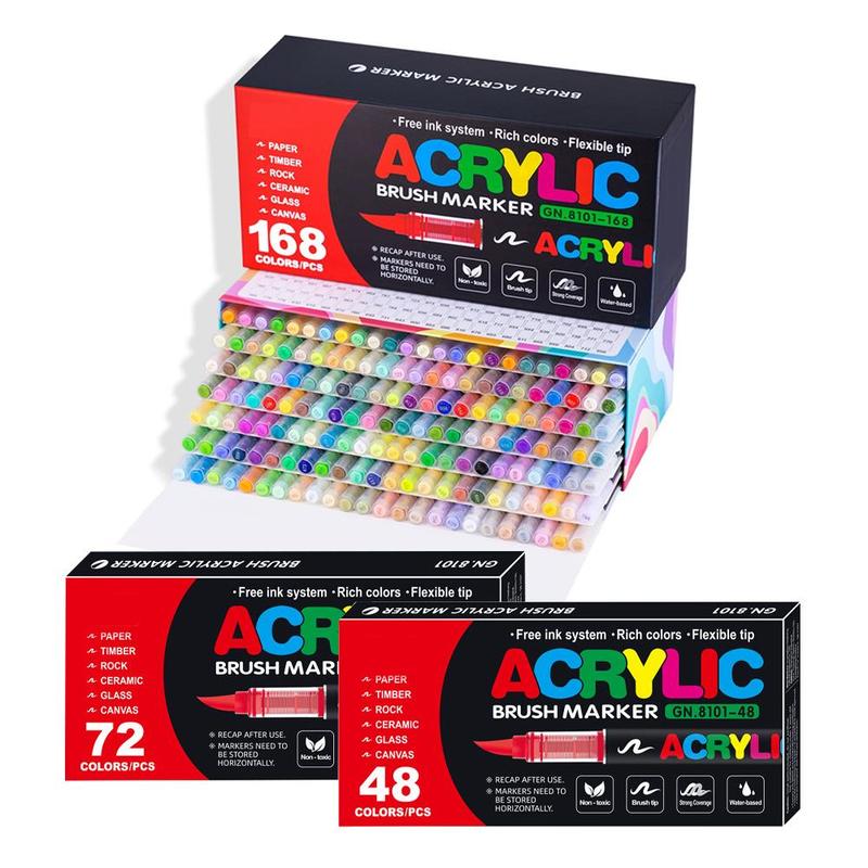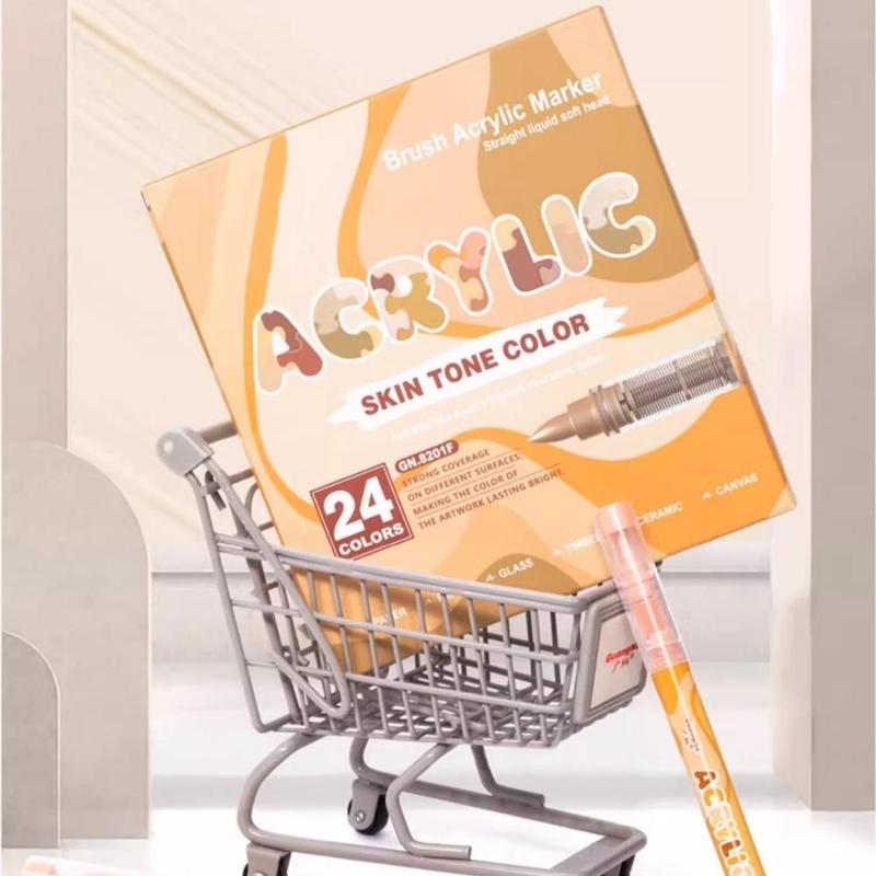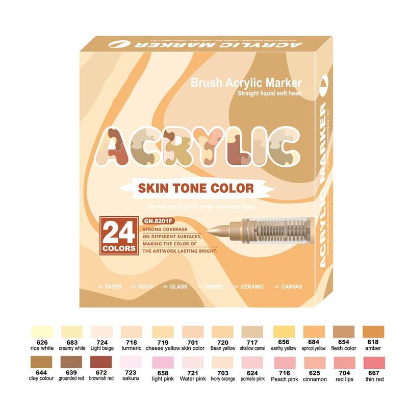 Acrylic Marker Pen Set, 1 Set 24-Color Liquid Soft-Tip Acrylic Painting Pens, Student Art Drawing Supplies for Home, Office, School and Dormitory, Christmas Gift