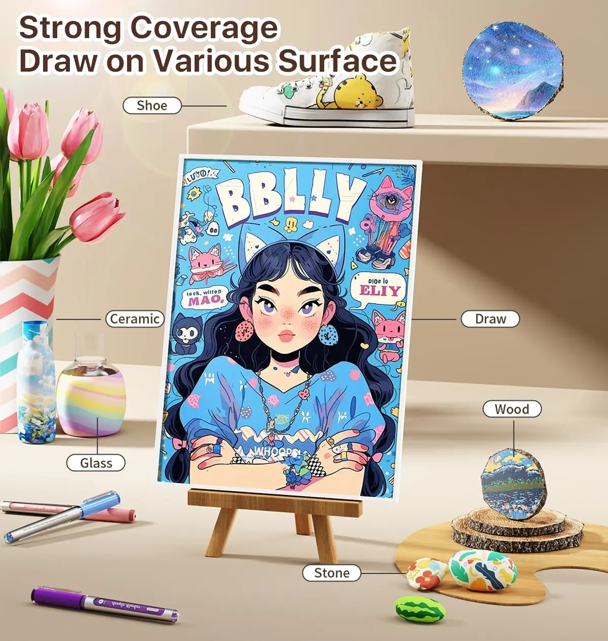 ·Vibrant and Opaque Colors: This acrylic paint markers set uses premium water-based ink for vivid coverage, allowing you to layer and highlight for more dynamic artwork, easily covering mistakes with another color