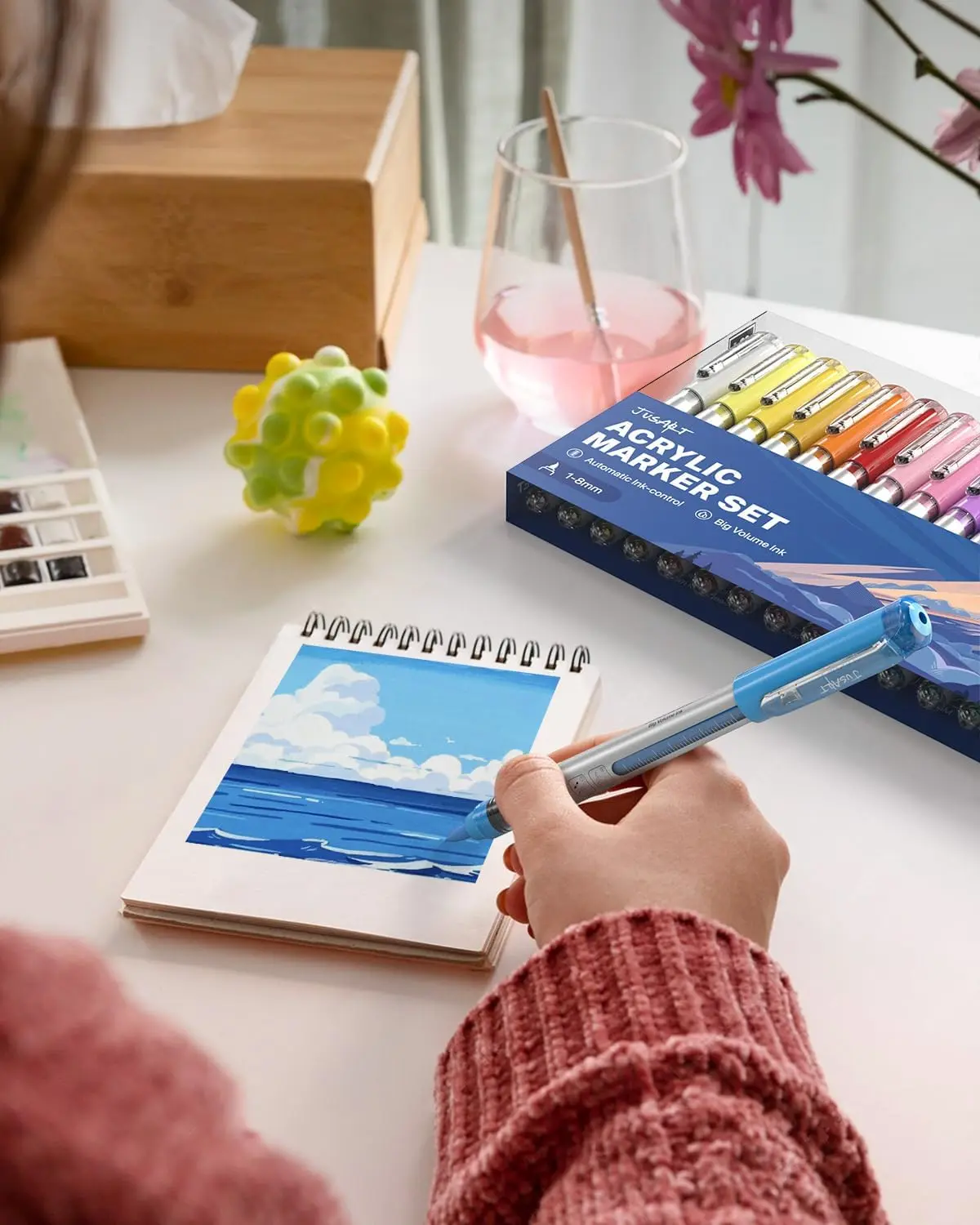 5. [JusArt] 30 Colors Flexible Tip Acrylic Marker Set, Waterproof Flexible Tip Acrylic Markers, Premium Paint Pens for Various Surfaces, Acrylic Paint Markers, Markers for Coloring, Art Supplies, Acrylic Marker, Coloring Supplies