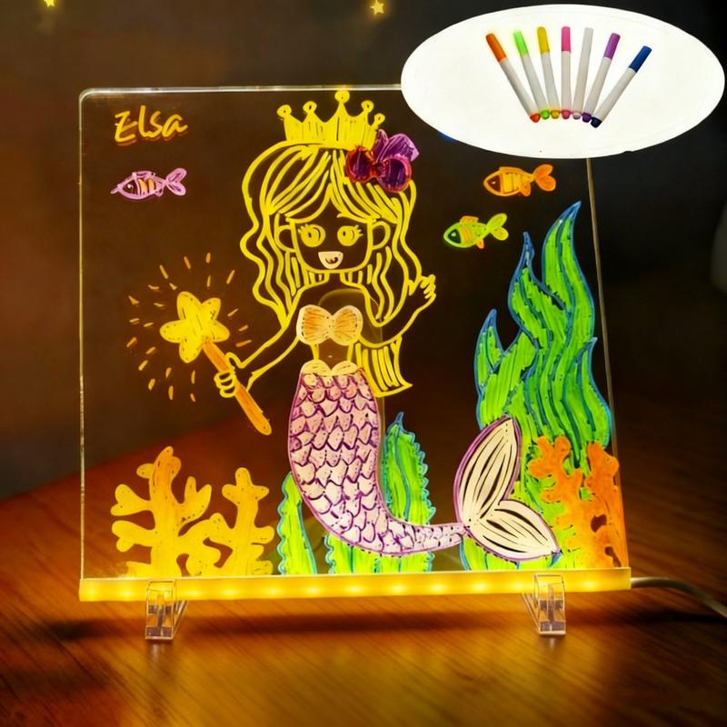 Do not buy, unless you plan to never erase the first thing you draw. I literally cannot get this thing clean. I tried to dry erase, tried windex, water, you name it. We’re currently using ours as a nightlight in our kitchen. Definitely not worth the money.