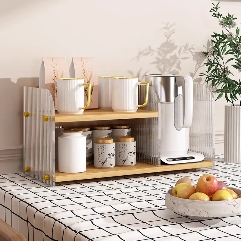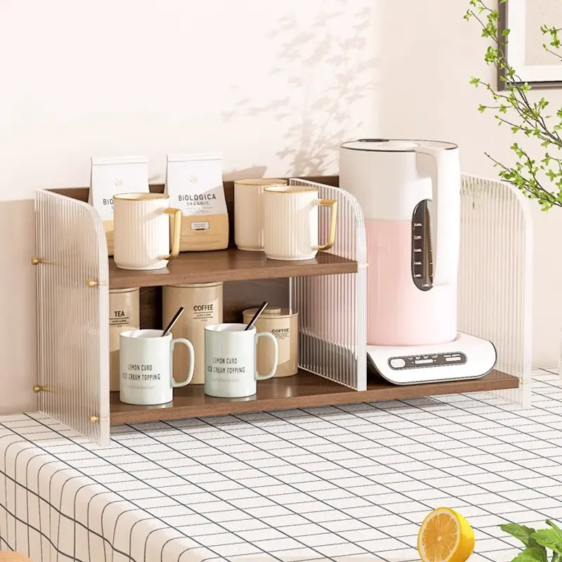 Desktop storage shelf, acrylic dining table, multi-layer storage and organization shelf, household table, tea and water bar, water cup shelf, Acrylic Display Rack