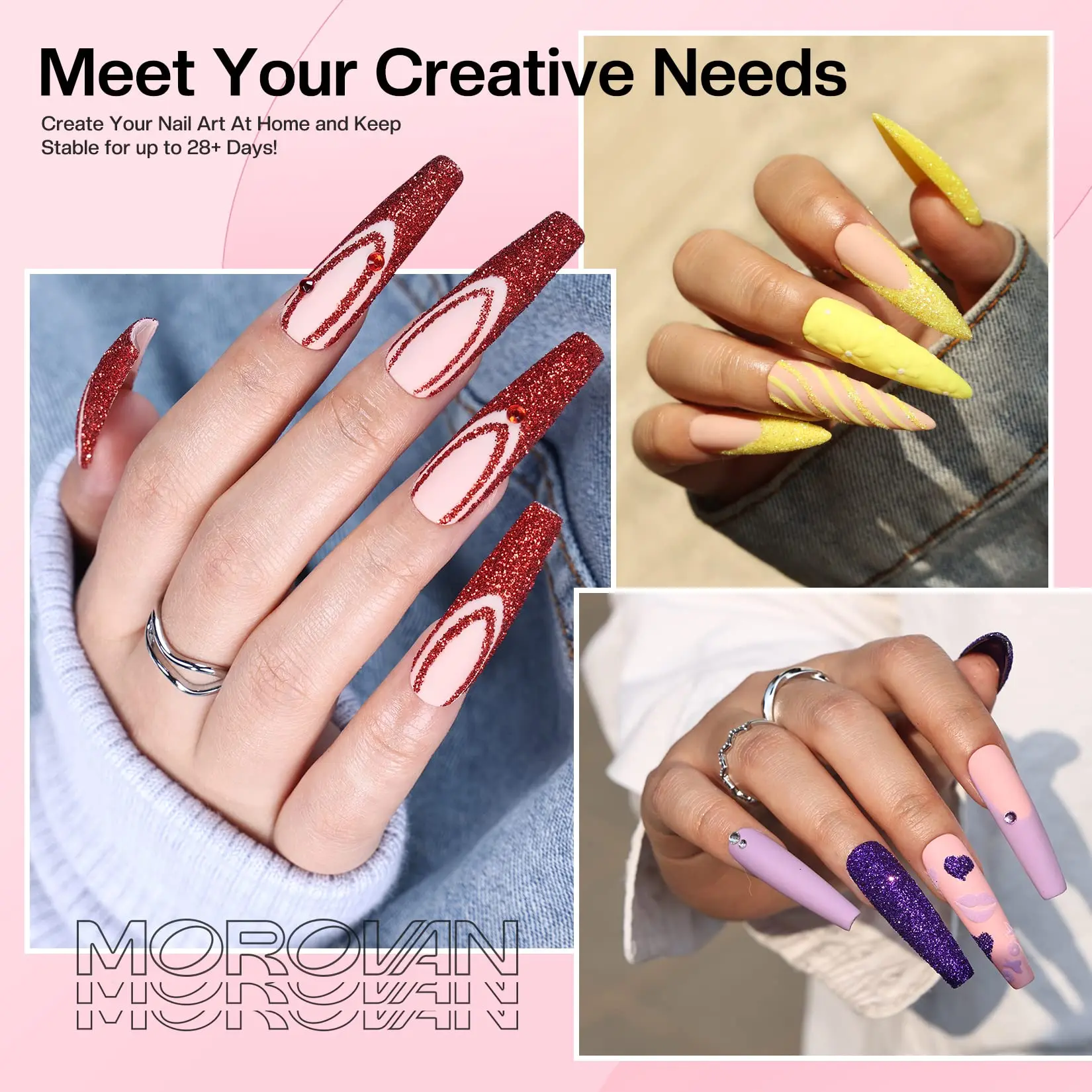 ·Professional Nail Set with Salon-quality - Morovan Acrylic Powder is a Bubble-free polymer that will also offer extraordinary clarity and provide a smooth self-leveling finish. With this nails kit acrylic set, You will get long-lasting and non-yellowing acrylic nails, acrylic powder takes 6~7 minutes to completely dry, offering the beginners the enough time to create or adjust nail art.