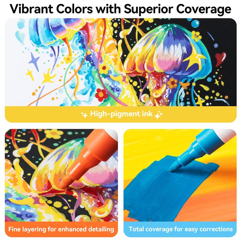 ·SUPERIOR COVERAGE & ODORLESS INK: Get stunning, opaque coverage even on dark surfaces. The water-based ink is non-toxic and odorless, making it perfectly safe for you to use anywhere.