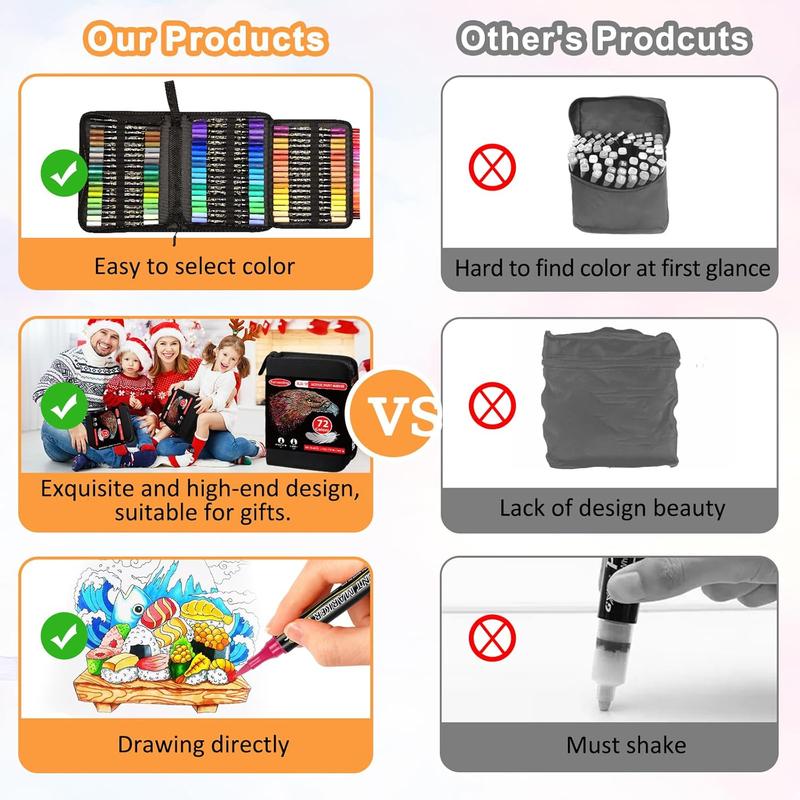 72 Colors Acrylic Paint Marker Pen Set, 1 Set Double-ended Acrylic Paint Marker Pen, Art Drawing Supplies for DIY Rock, Wood, Canvas, Stone, Ceramic, Acrylic Drawing Markers
