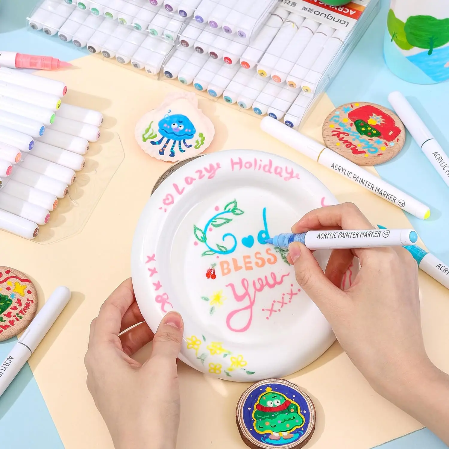Acrylic Paint Marker Pen Set, 9/36/63/81/126pcs Soft Brush Tip Acrylic Paint Pens Set, Professional Color Series for Rock Painting, Ceramic, Wood, Canvas, Glass, Stone, Fabric, Art Markers Pen