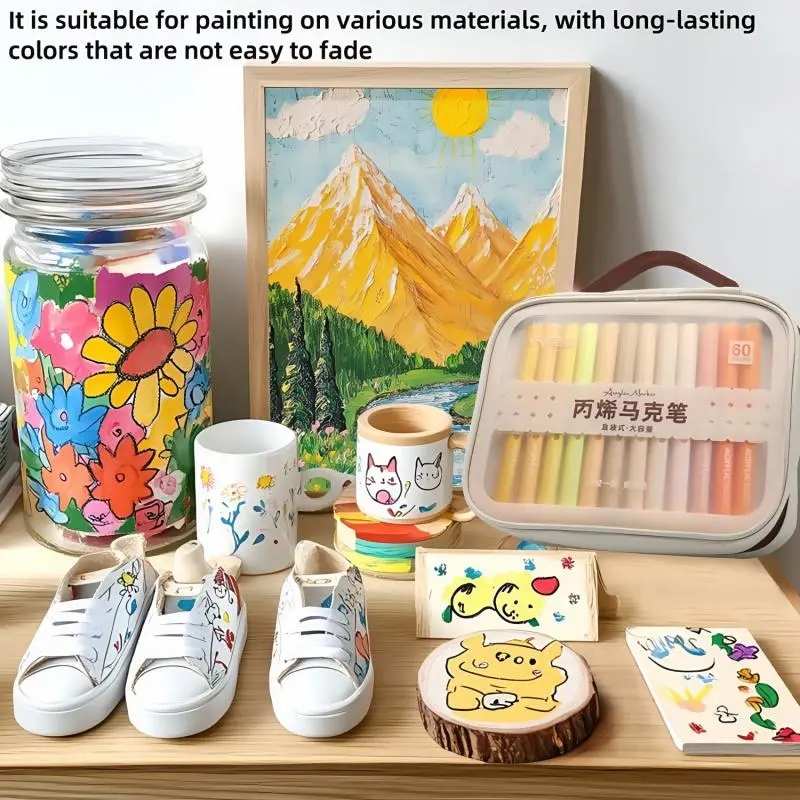 Acrylic Paint Marker Set, 24/36/48/60/84 Colors Non-toxic Acrylic Pens with Portable Storage Bag, Art Supplies for Home School Students, Art Drawing Supplies