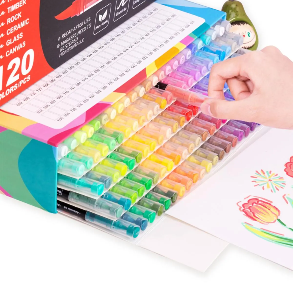Best markers I’ve ever used! Love them! I just bought my 3rd box! Started with the 48 for my daughter for Xmas and I fell in love with them! I bought this 168 set for myself! Then I just bought another 168 set because I’ve used them so much! I wish you could purchase the replacement tips though.