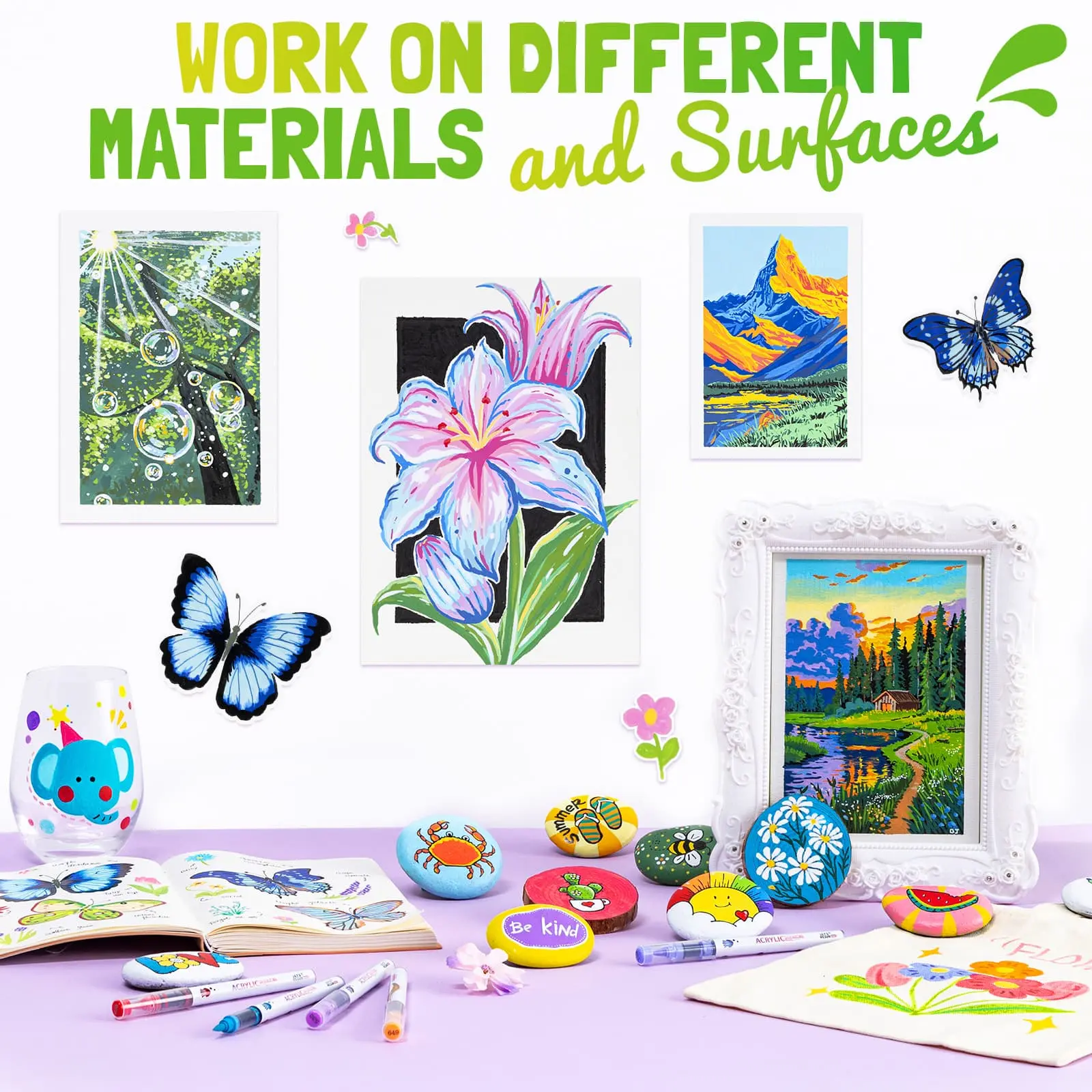 ·High Quality Water-Based Ink:Our acrylic paint markers with high quality, low odor, non toxic, quick drying,waterproof,vibrant ink that is fade resistant and does not bleed through the paper.The ink adheres well to various surfaces,including paper,rock, wood, ceramic, glass, canvas, and more.