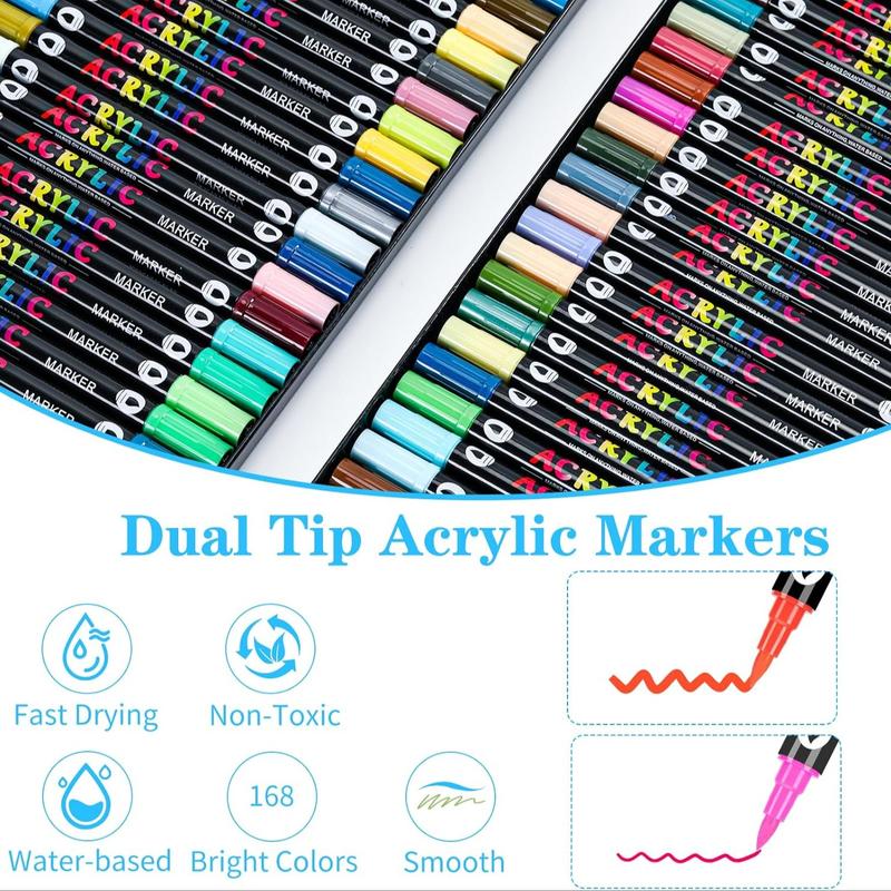 【Double-ended Pens】: Featuring dual tips including soft brush and fine point for versatile applications across various surfaces.