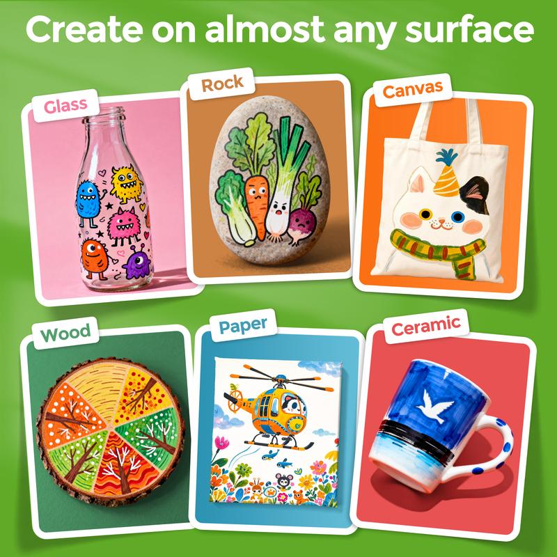 🎁 Works on rocks, glass, wood, ceramic, canvas, metal, fabric, plastic, pumpkins, and eggs. Great for gifting on birthdays, Christmas, Easter, or Halloween.