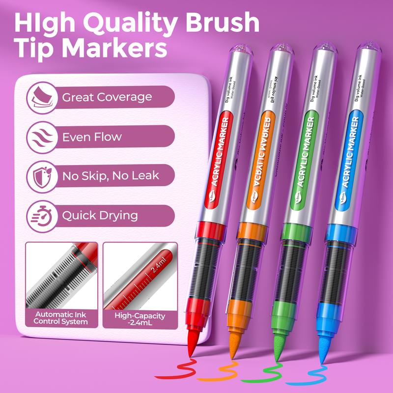 Each marker contains 2.4ml of premium water-based acrylic ink. This larger amount ensures long-lasting use and fewer refills during your creative sessions. Perfect for extensive projects without frequent stops.