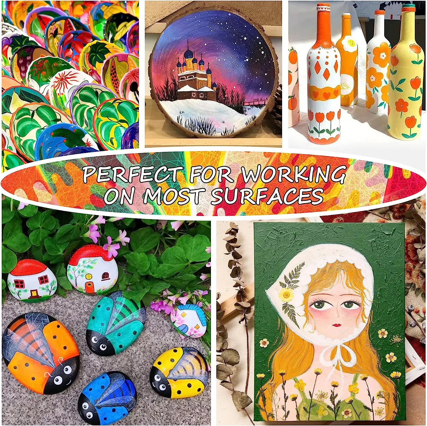 ·MULTI-PURPOSE PAINT: Acrylic paints for art dry quickly and stay on surfaces extremely well, permanent, waterproof and fade resistant, suitable for most surfaces like glass, rocks, nails, walls, canvas, leather, ceramic, wood, clay, crafts and more, great for art beginners, enthusiasts, professional artists, students, etc.