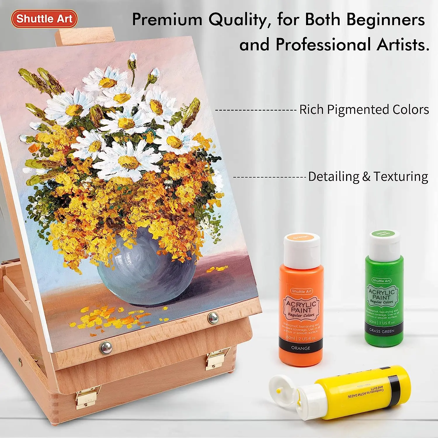 ·PREMIUM QUALITY: These acrylic paints are water-based, have a creamy texture, and are easy to mix and layer. They have great coverage, and a little paint can go a long way on your surface.