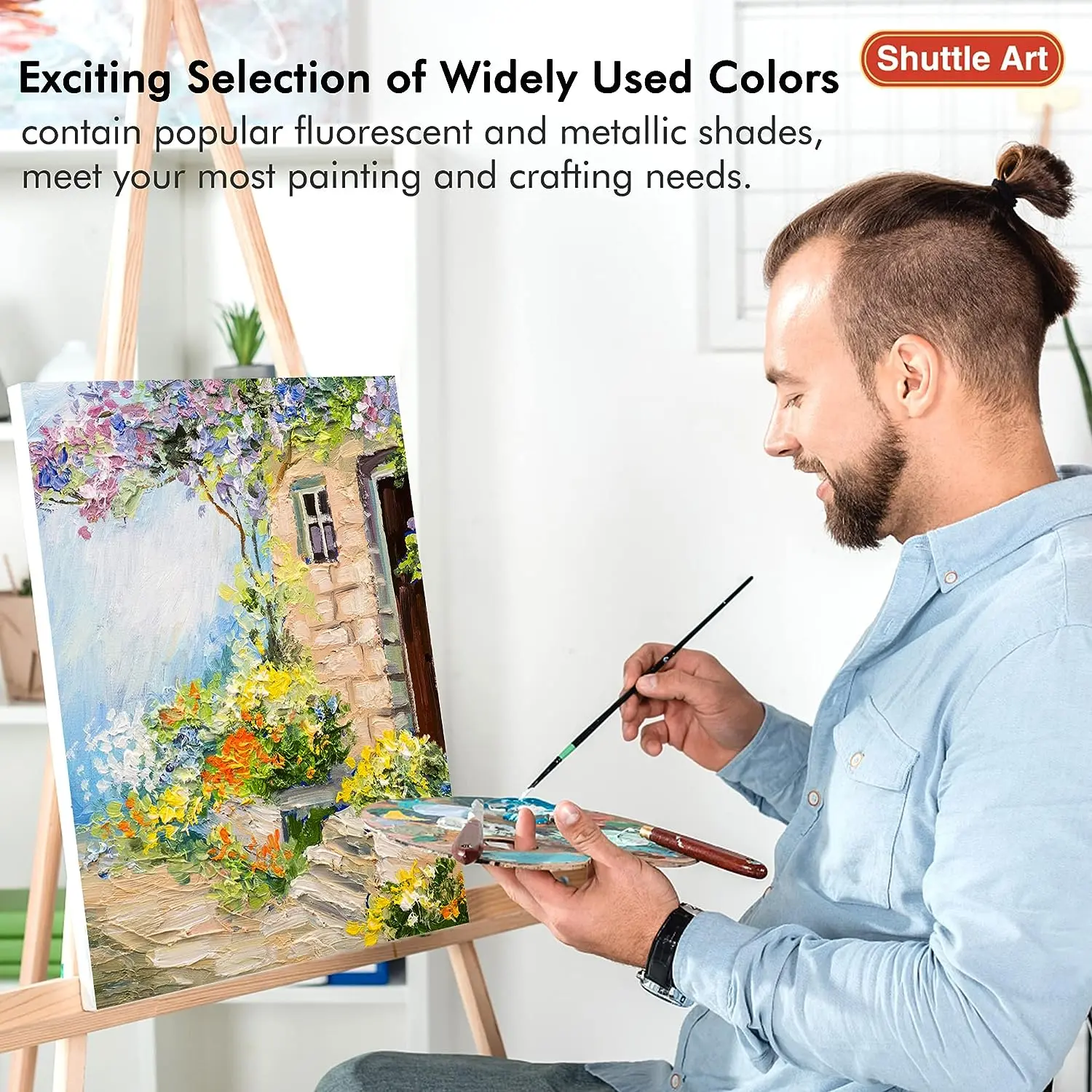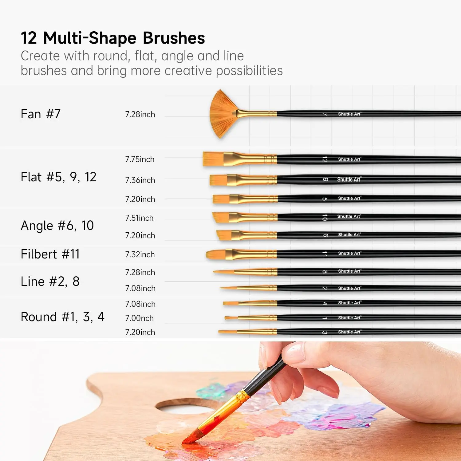 ·78 UNIQUE COLORS+2 WHITE & BALCK: Shuttle Art 92 Pack Acrylic paint set contains 78 unique colors and 2 white & black acrylic paint in 60ml/2oz bottles and 12 paint brushes, including the most commonly used colors and inspiring hot fluorescent and metallic colors to your art projects, ideal for painting and crafting.