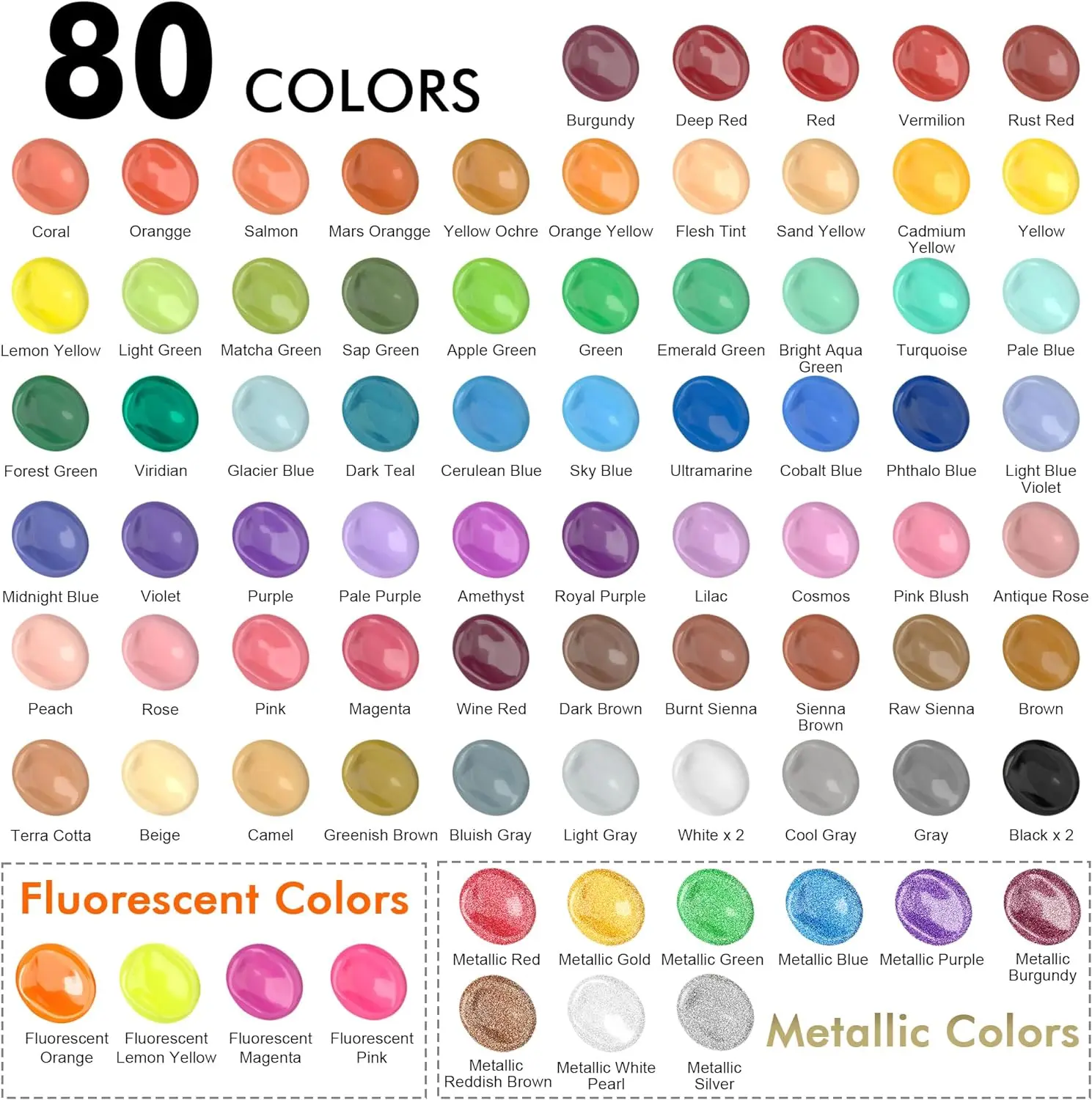 80 Colors Acrylic Paint