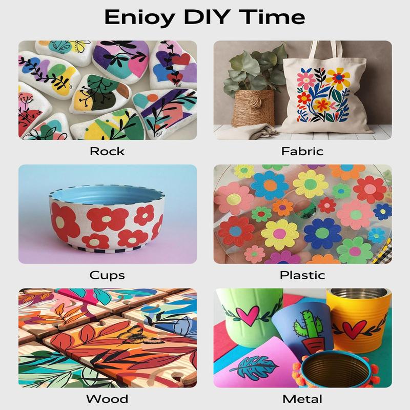 Β·γUpgraded Cotton Nibs VersionγDifferent from ordinary push-type acrylic pens, our acrylic markers are cotton nibs, they can be used directly and dry faster, making them perfect for kids! This pack of acrylic markers paint pens features high-quality acrylic paint that dries opaque, so you donβt have to make a second layer! The ink in the paint pens acrylic markers is water-based and features a durable nib. Our paint pens dry quickly to prevent smearing, and their fade-resistant formula ensures your artwork retains its vibrancy over the years. Note:Please tighten the cap and put pens horizontally if you don't use them.