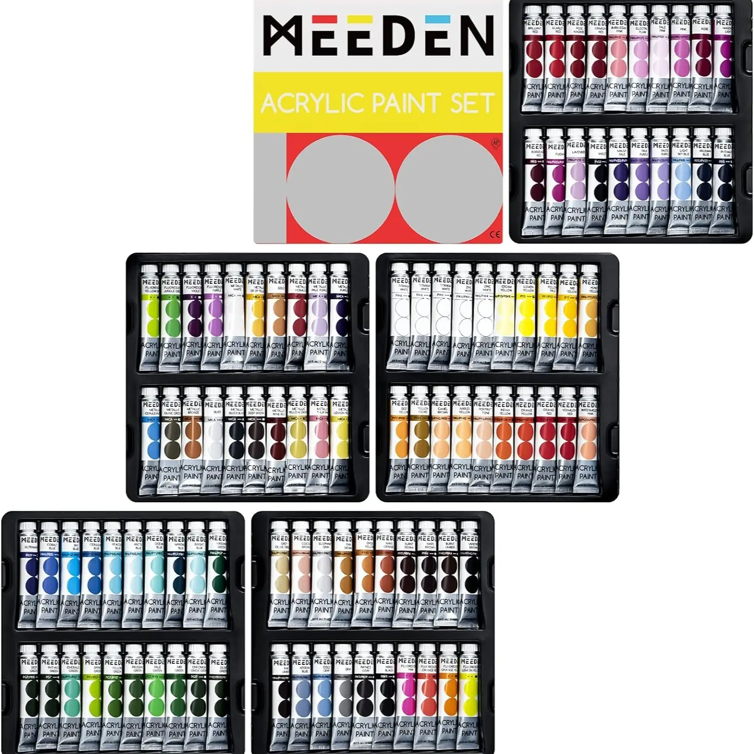·INFINITE RANGE OF COLORS: A wonderful array of 100 different vibrant acrylic paint colors can meet your various painting needs. Including 76 regular acrylic paints, 16 metallics, and 8 fluorescents. Basics & novelties, colds & warms, what you need & what you want, all in one.