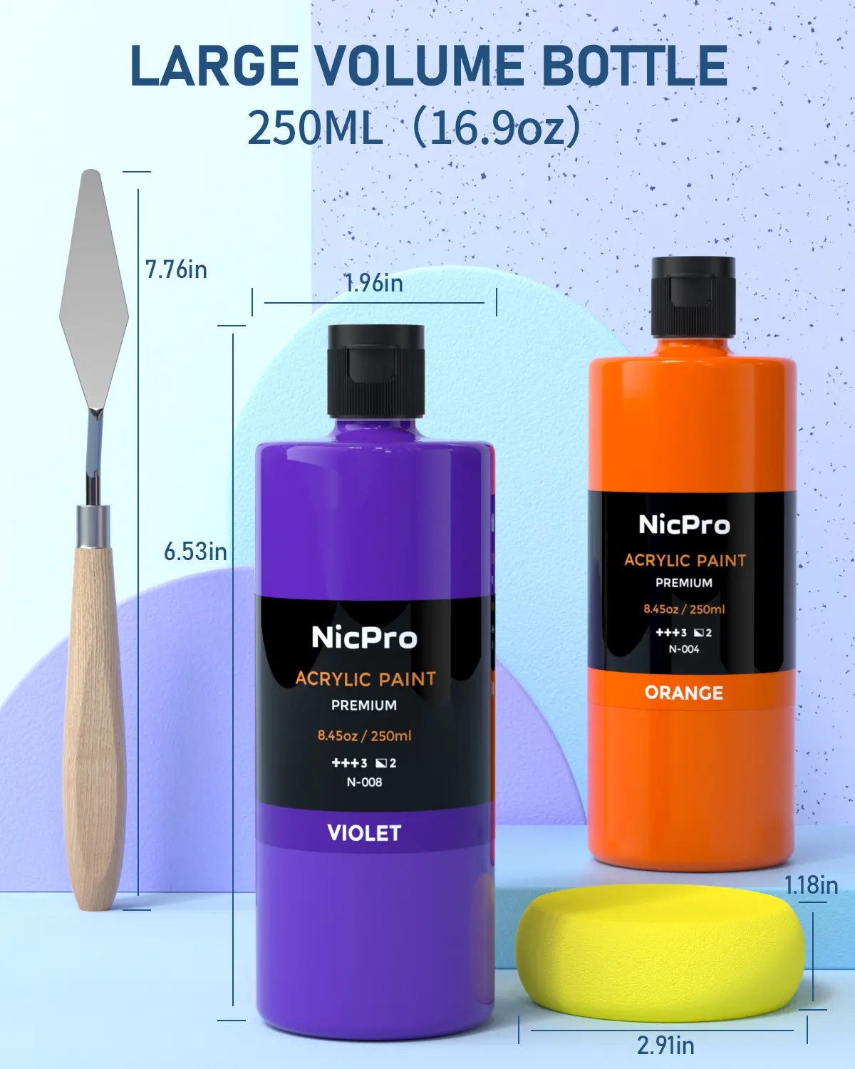 Discover the Nicpro 24 Colors Large Bulk Acrylic Paint Set, perfect for artists. Each bottle contains 8.45 oz (250 ml) of non-toxic paint. Ideal for multi-surface applications on canvas, wood, fabric, leather, rock, glass, paper, crafts, and hobbies. Comes with a color wheel for easy selection. 🎨