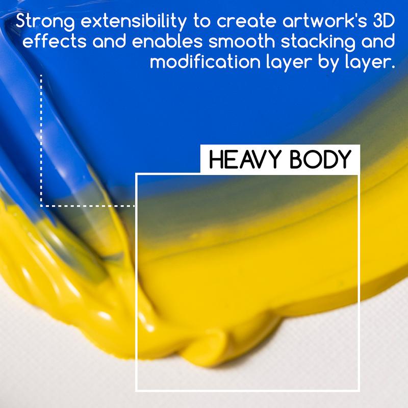 ·Versatile Texturing: Designed for versatility, MEEDEN heavy body acrylic paints allow artists, students, and art enthusiasts to create rich and substantial textural effects. Its excellent plasticity maintains clear brushstroke textures, whether delicate or bold, making it suitable for every creative pursuit.