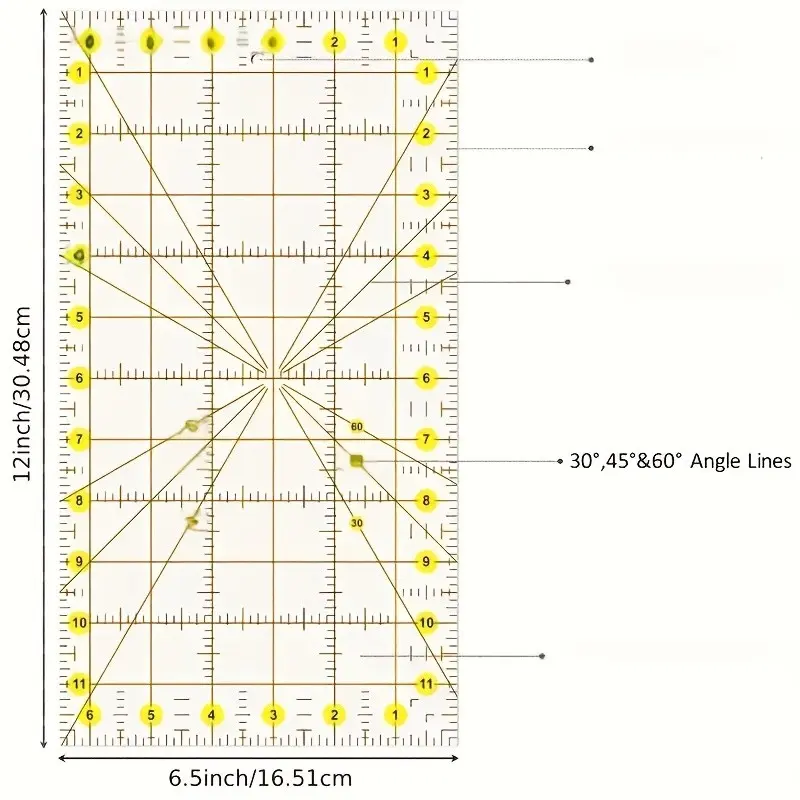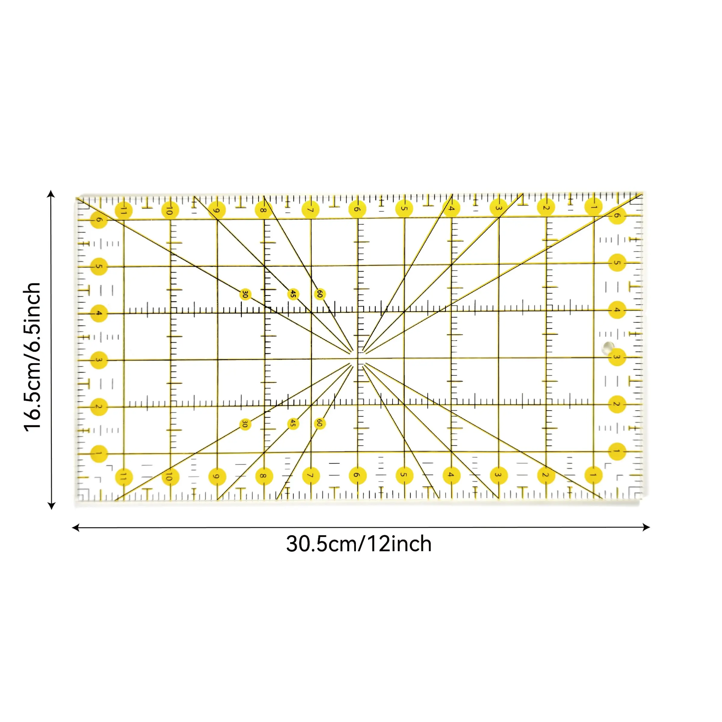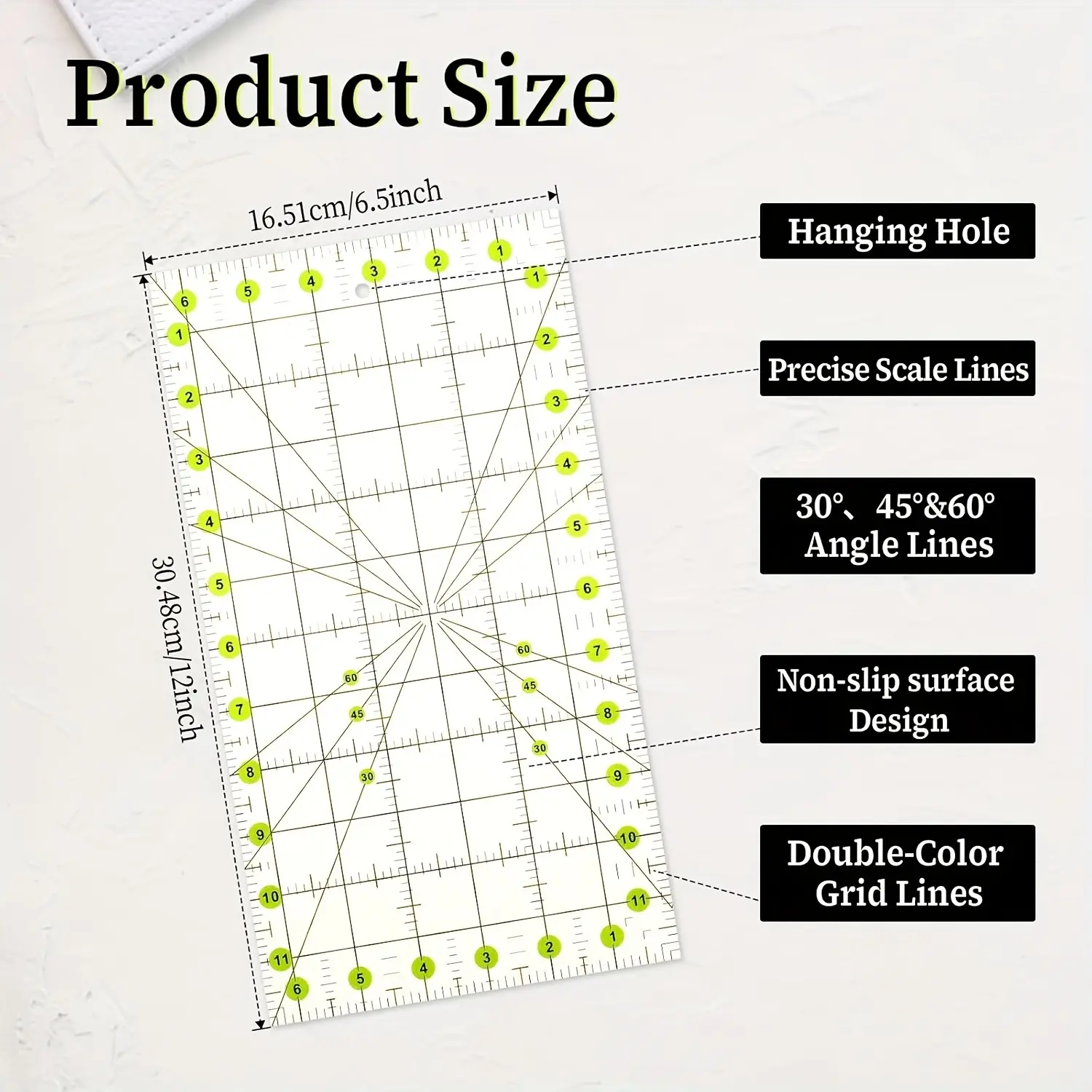 Acrylic Patchwork Ruler 6.5x12 Inches, Multi-Functional Sewing Measuring Tool, 30°/45°/60° Angle Lines, Best Gift for Quilters and Crafters
