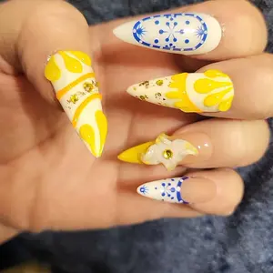 Perfect Spring and Summer set. H468 Stiletto Classic size Med. Amazing Bloom. Great quality and fast shipping. This set reminds me of fresh lemonade. The 3D flowers with a mix of rhinestones are so much prettier in person. Definitely 10/10.