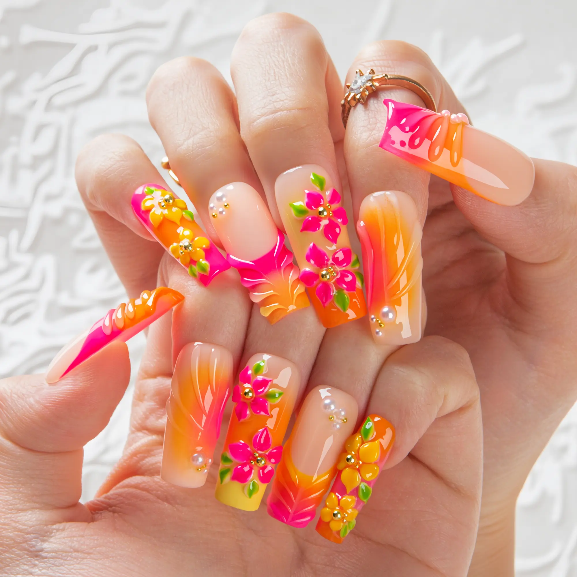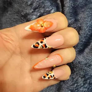 I' such a sucker for animal prints. I the the 3D flower. They are so durable and gorgeous. H374 Stiletto Classic size Med. The details are amazing. Great salon quality. Fast shipping also. The compliments just keep coming.