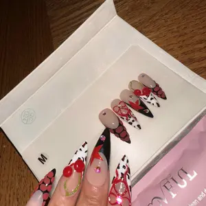 ABSOLUTELY LOVE THESE NAILS😍🤩 they fit perfectly, nice and thick, obsessed with the design!!⭐️🍒 wish they had discount codes so I could buy some more 😄