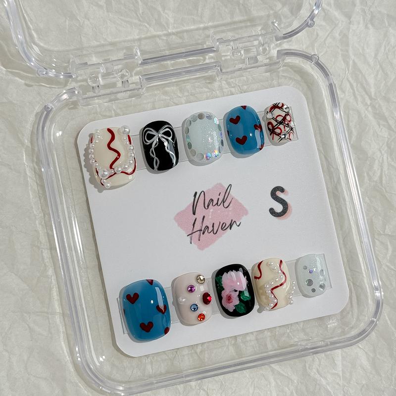 NailHaven|short nails collection continued|  handpainted cute designs| acrylic press-on| fake nails |Handmade | high quality Press on nails 10 pcs|reusable nails|nail art|nail charm|handmade press ons|uña sacri lic as S50