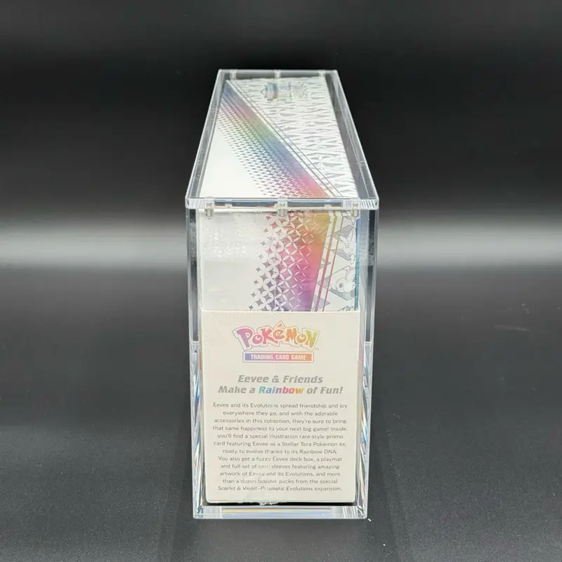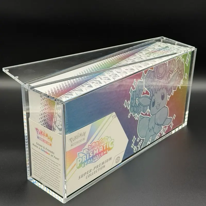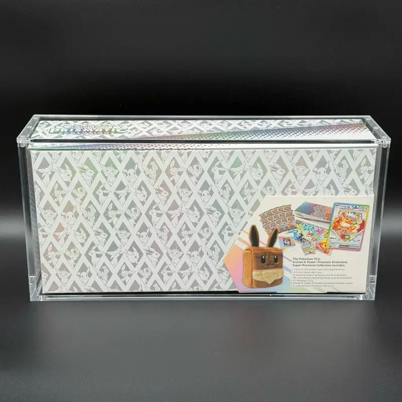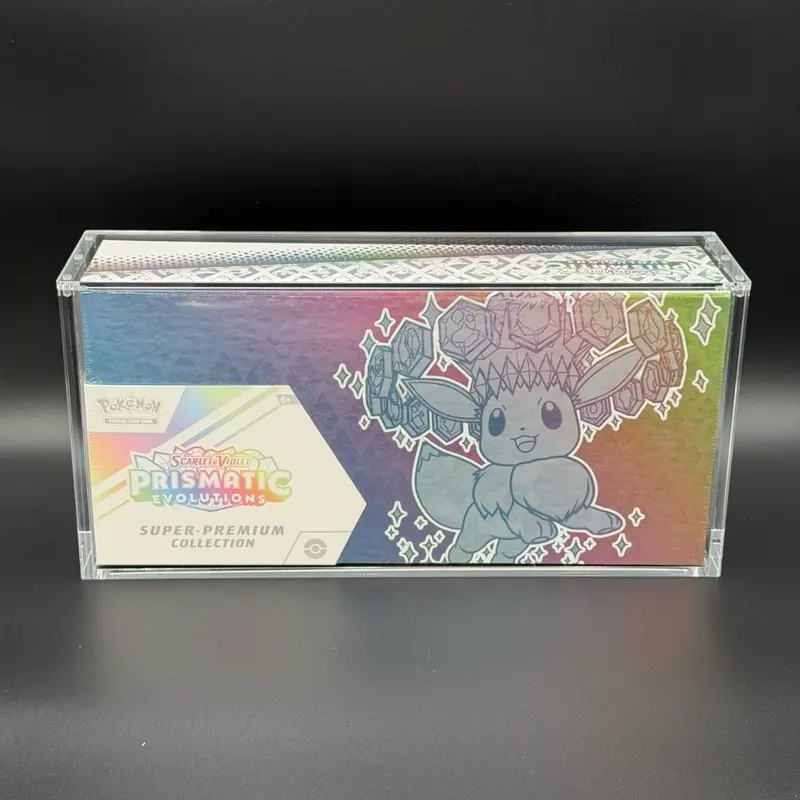 Whether you’re protecting a sealed collectible or displaying it on a shelf, desk, or in your collection case, this acrylic display is the perfect way to keep your Prismatic Evolution SPC protected while still on full display.