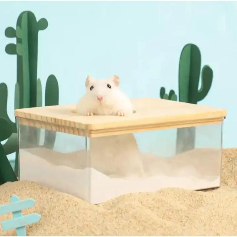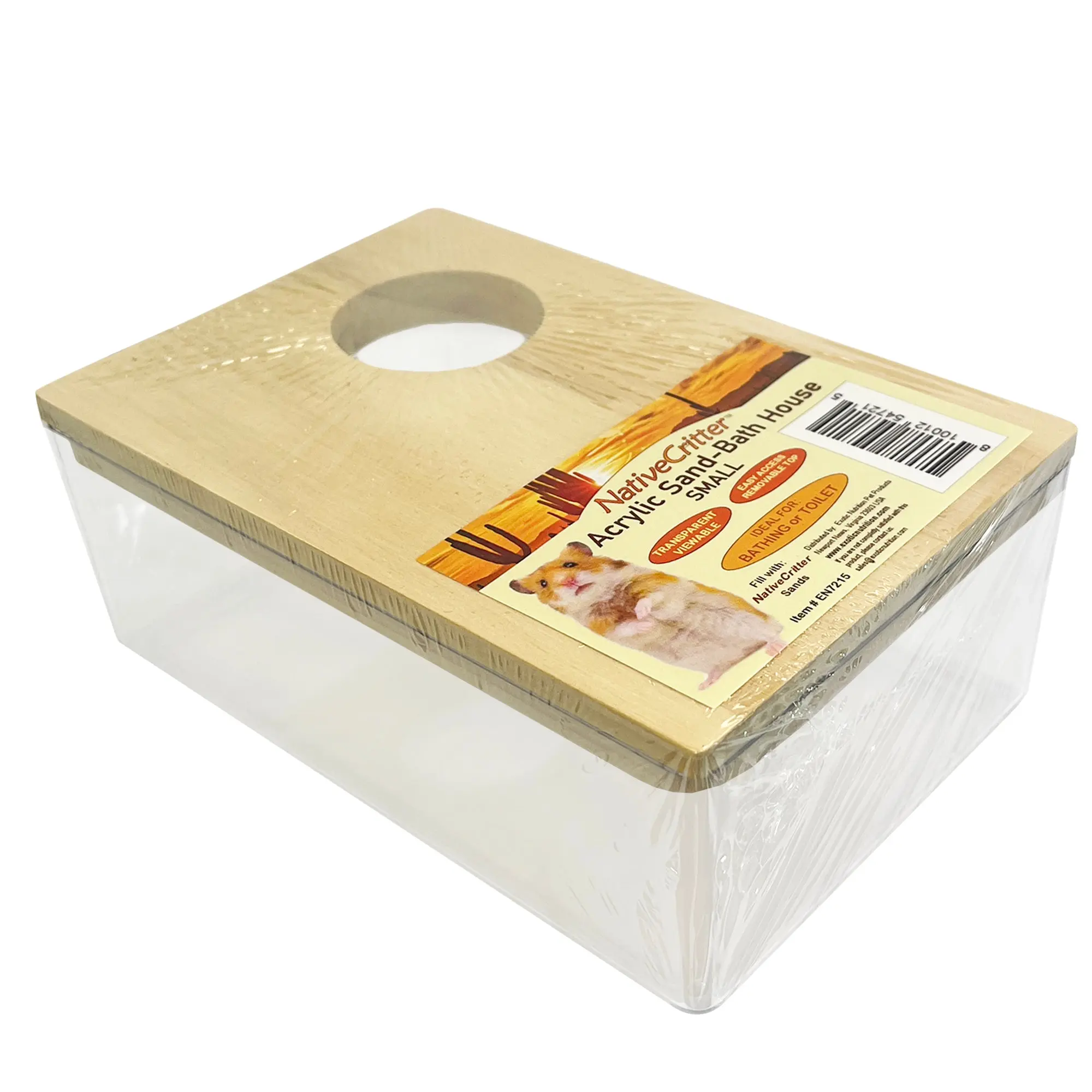 NativeCritter Acrylic Sand Baths are a must-have for hamsters, gerbils, mice and other small animals. Fill with NativeCritter Desert Sand or Hamster Litter to keep their fur clean, glossy and dust free. Constructed of strong, crystal-clear acrylic, multiple sizes and shaped dust baths available to fit your particular cage. Plus, the covered design reduces messes and the curved base guarantees complete contact with the dust for every bath. Acrylic sand baths provide a convenient way to watch your hamsters digging sands.  Use the NativeCritter Climber Cave or Wave Ladder for easier access to the bath house. Acrylic Sand Bath also doubles as a cozy home - just remove sand and add a comfy nesting material!