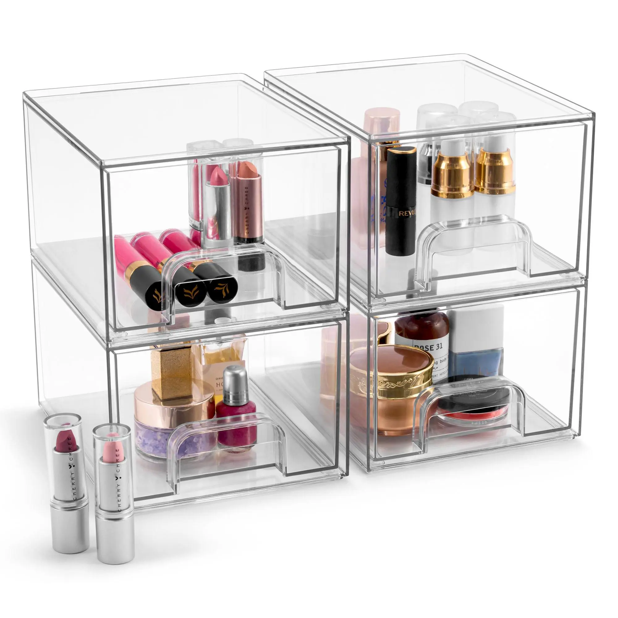 5. Sorbus Acrylic Storage Containers with Pull-Out, 4 Pack Small