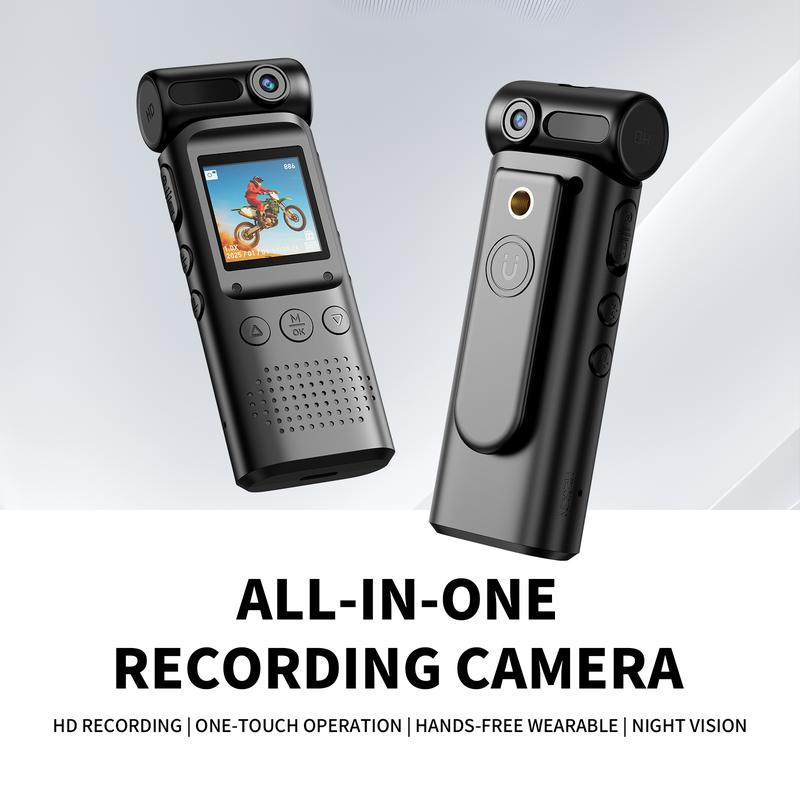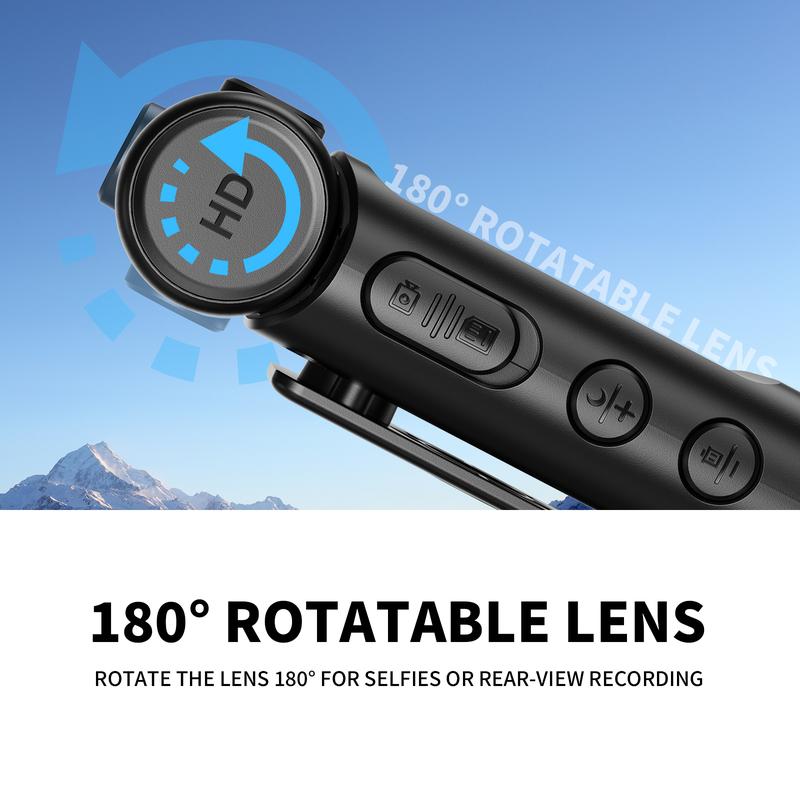 Operation is simple: push up to start recording and down to save. The 180° rotatable lens flips seamlessly for perfect selfies using the built-in screen or for rear-view recording. With one-touch operation, hands-free convenience, and night vision capability, you'll never miss a detail.