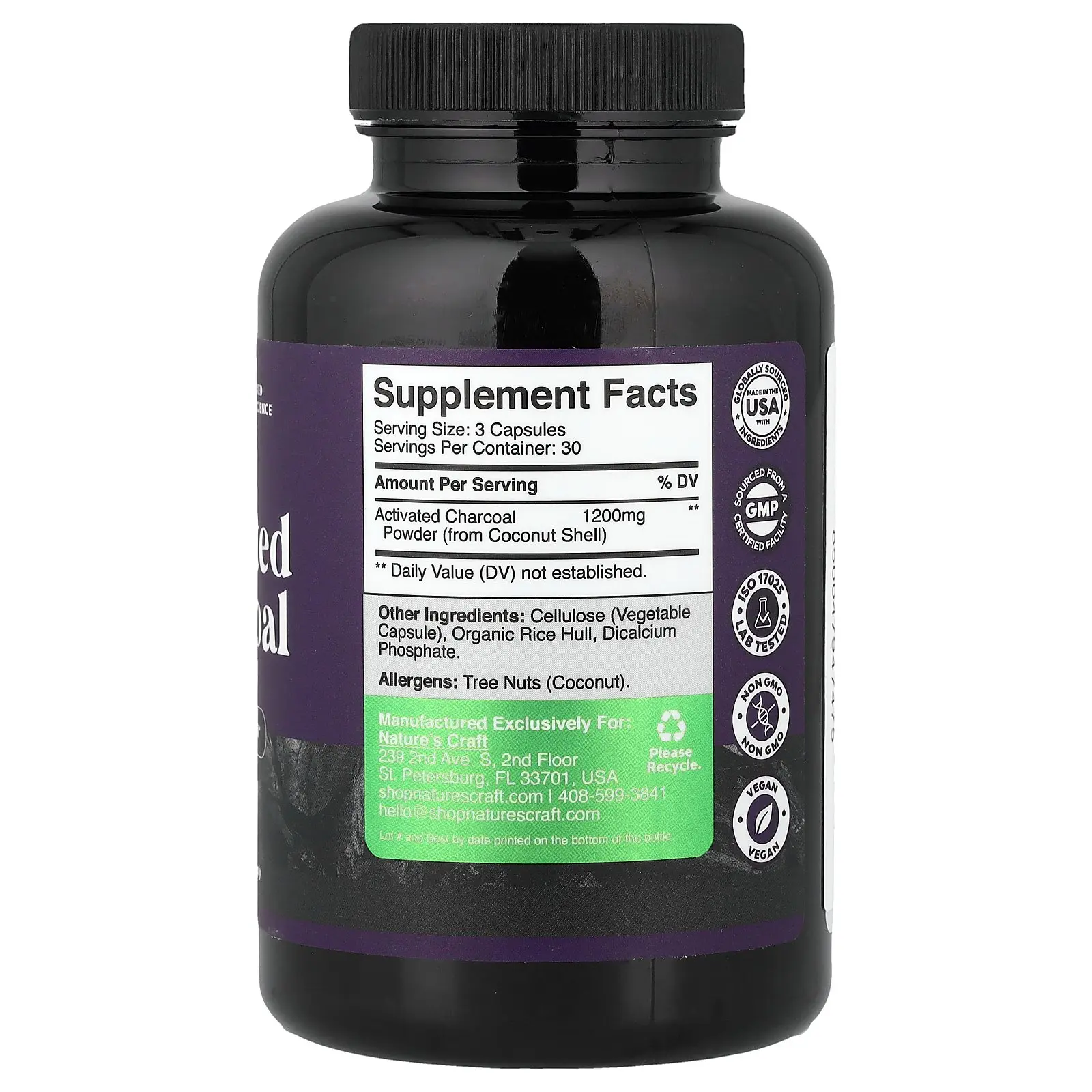 Nature's Craft Activated Charcoal, 90 Capsules (400 mg per Capsule)