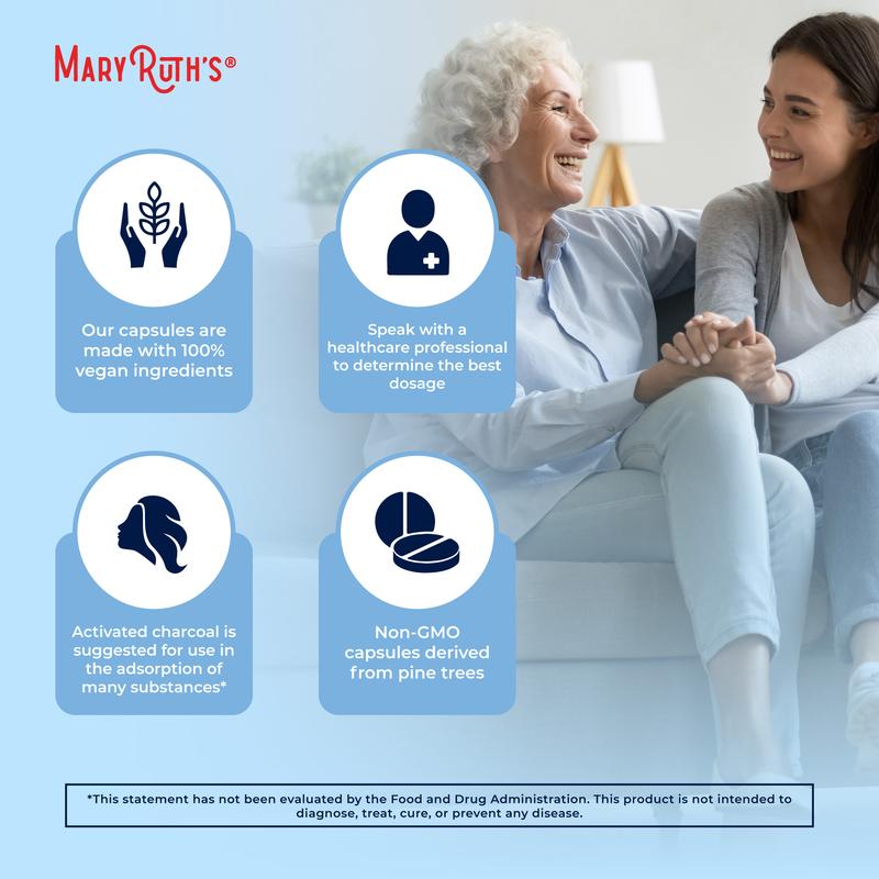 For Most Lifestyles: MaryRuth's Activated Charcoal Capsules are Vegan, Non-GMO Project Verified, Dairy Free, Nut Free, Gluten Free, Soy Free, Sugar Free, Shelf Stable. Made in a GMP Facility. Clean Label Project Certified. B Corp Certified.