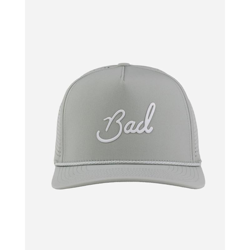 Our iconic hat gets a technical upgrade with laser-cut perforated back panels that deliver superior ventilation when the pressure's on. Featuring a structured front crown for a clean look, bold rubber Bad patch for subtle flex, and our signature rope detail that says "yeah, we know style matters on the course." The perfect blend of performance engineering and statement-making design for players who aren't afraid to stand out while they dial in.