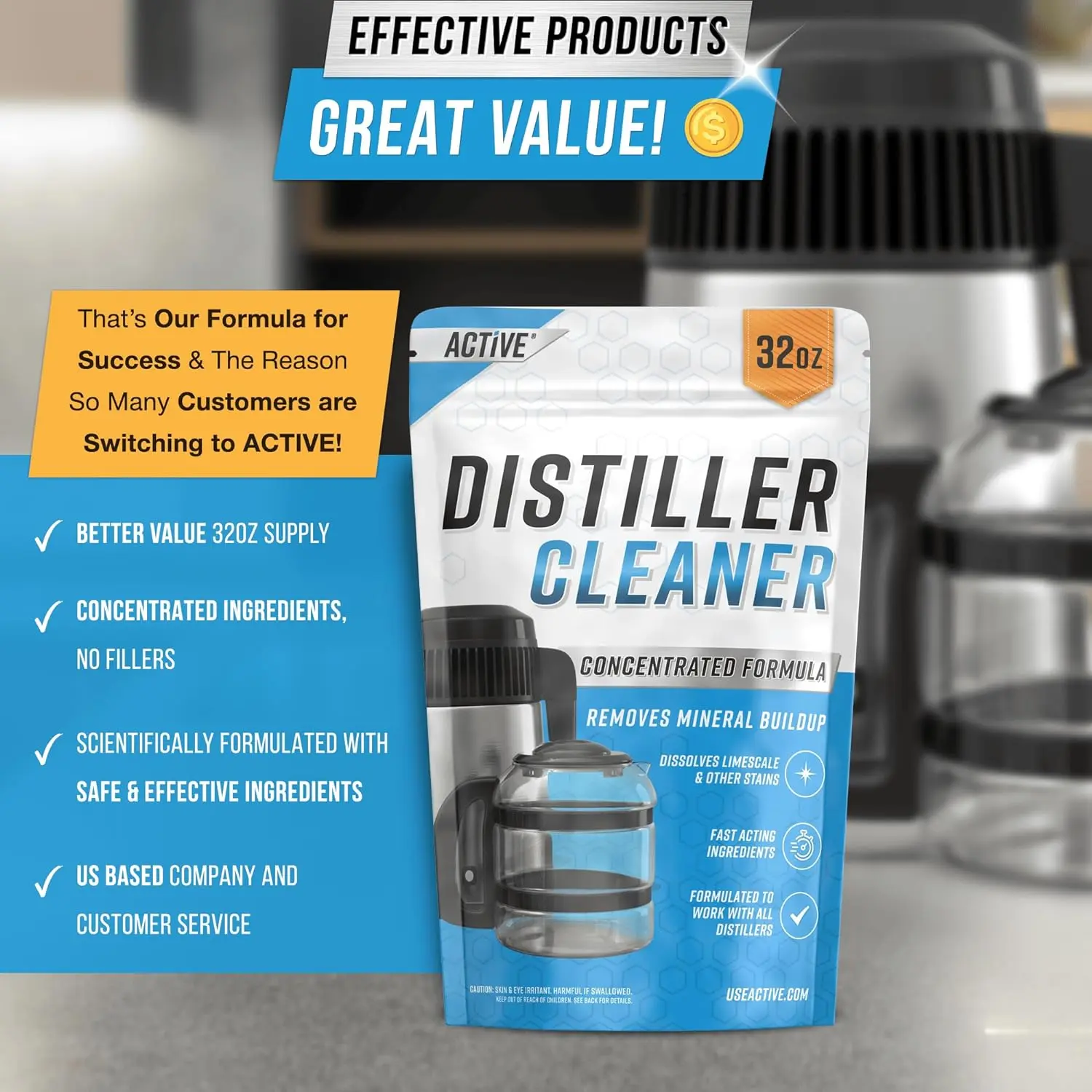 Better Values for Your Peace of Mind: ACTIVE Distiller Cleaner Includes 32-oz Citric Acid Bulk or up to 20 Uses at recommended amount